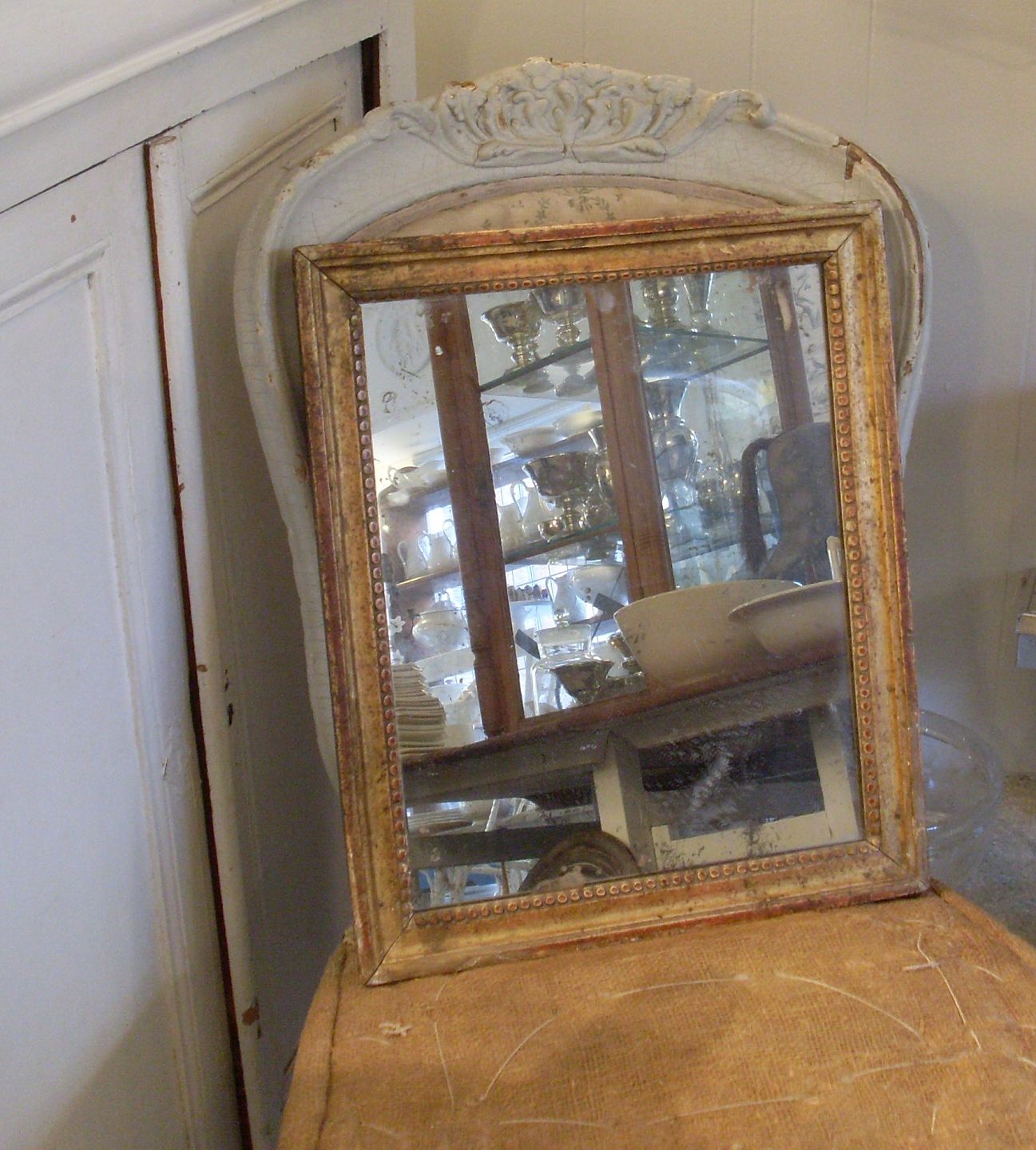 Louis XVI spejl med smuk perlekant, fremstår med originalt spejlglas.