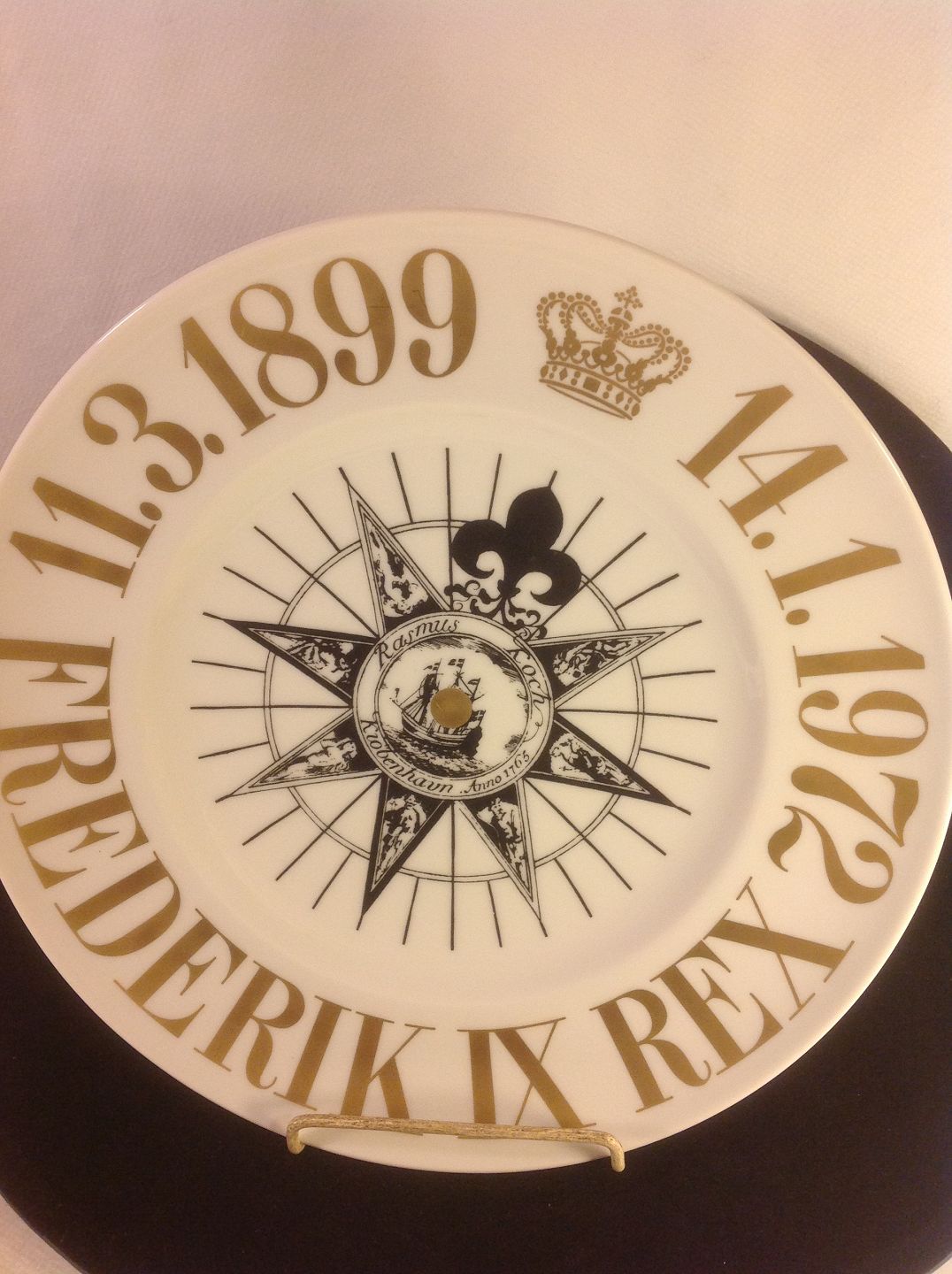 Mindeplatte Bing & Grøndahl B&G 1972 Motiv: Sladrekompas platte fra kongeskibet DANNEBROG.