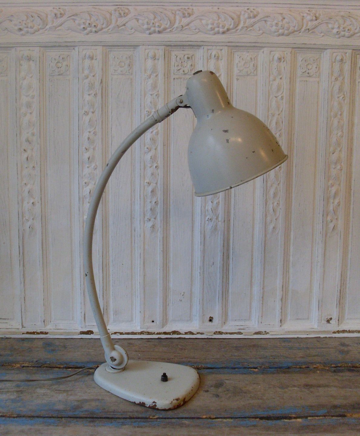 Lækker skrivebords lampe i gråmalet metal.