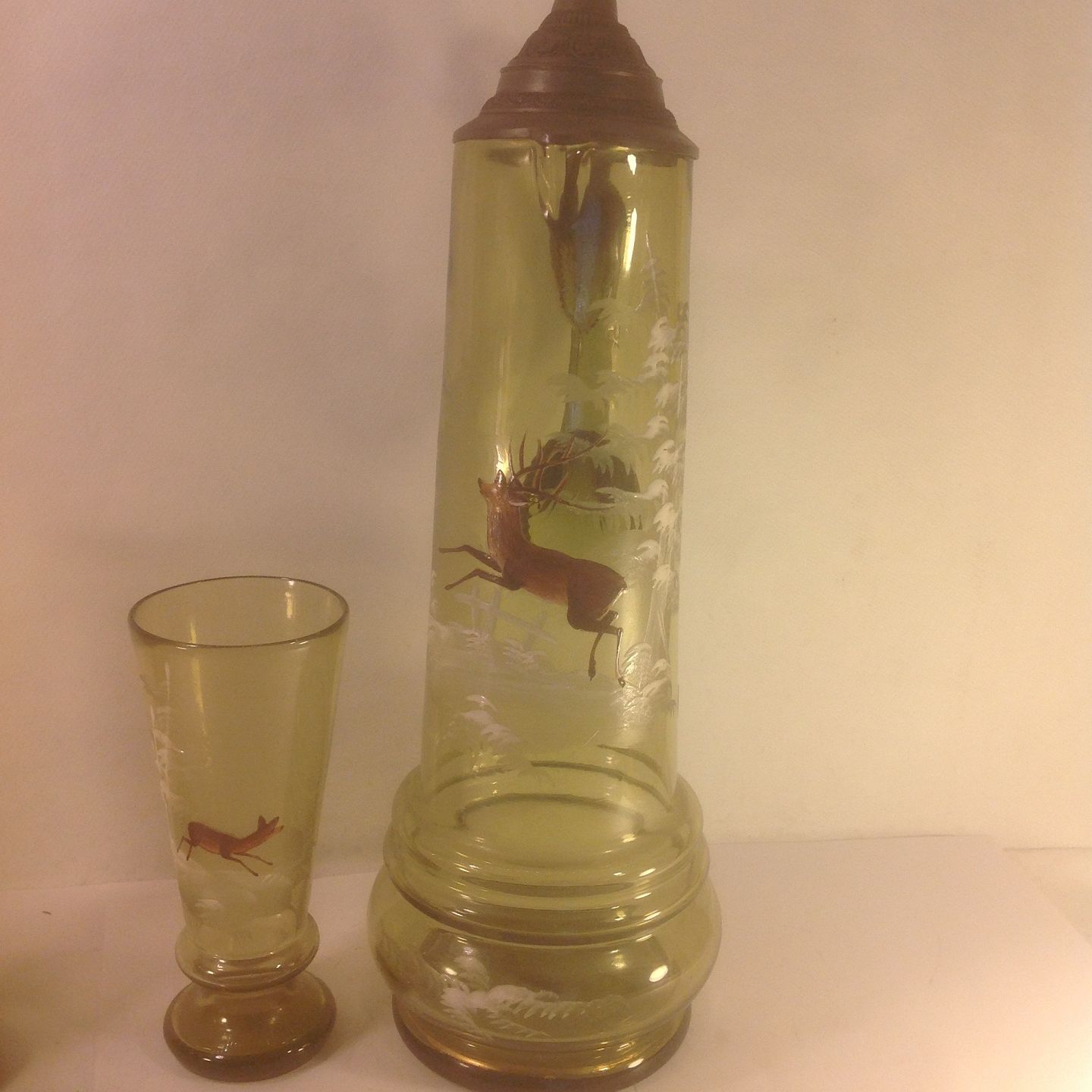 samt to glas med emalje af rådyr.