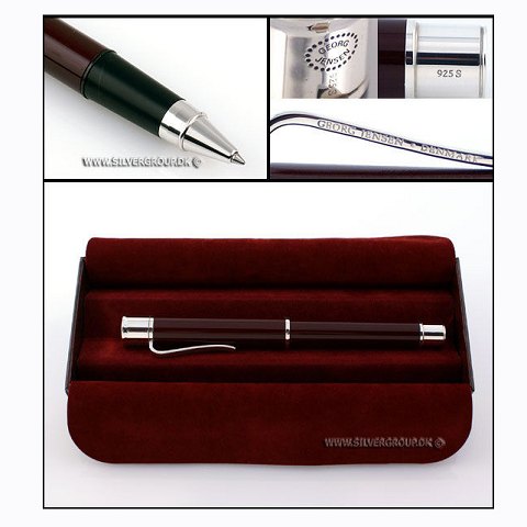 Georg Jensen Kuglepen i Sterling Sølv og bordeauxfarvet lak