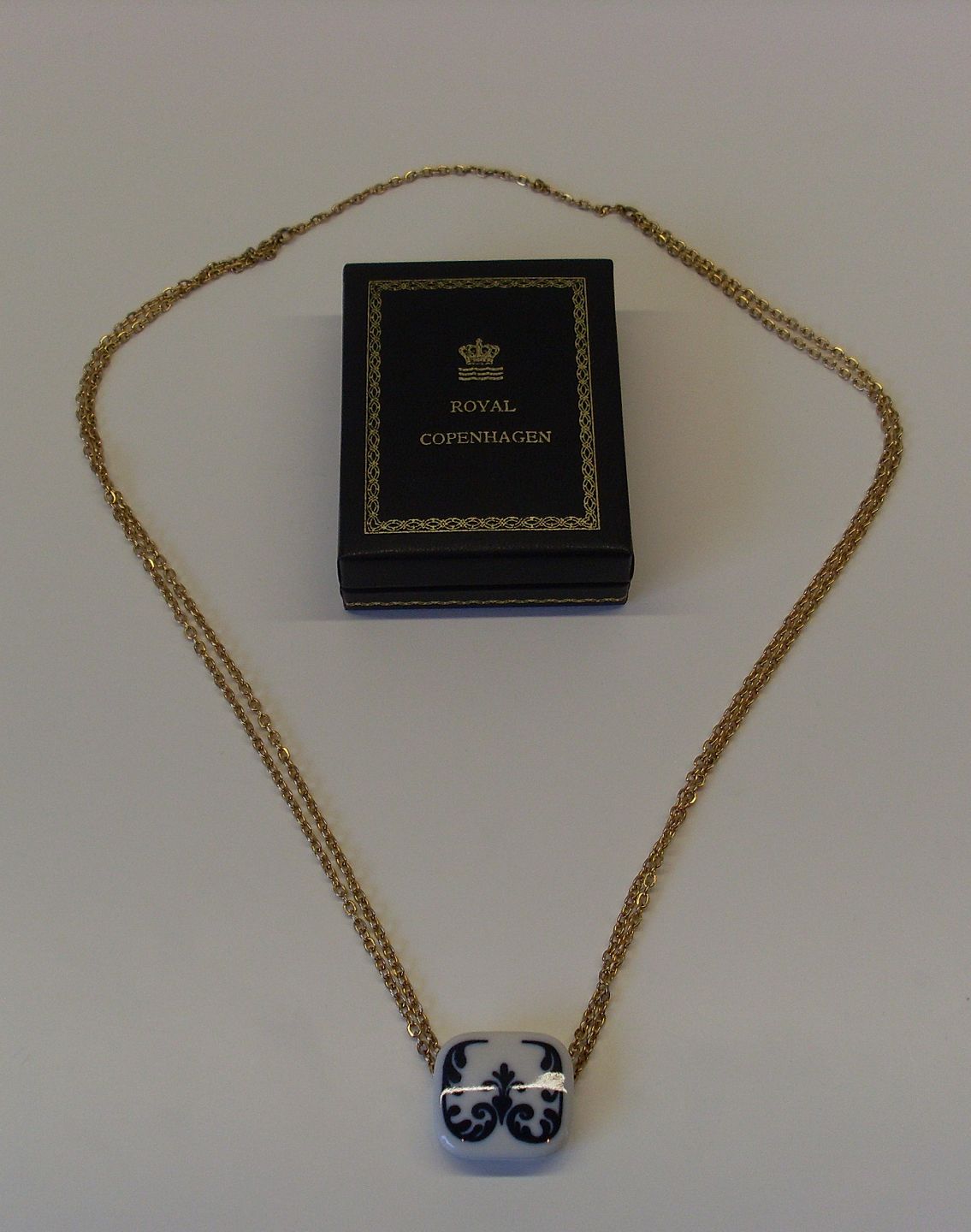 Royal Copenhagen porcelæns vedhæng i forgyldt kæde.