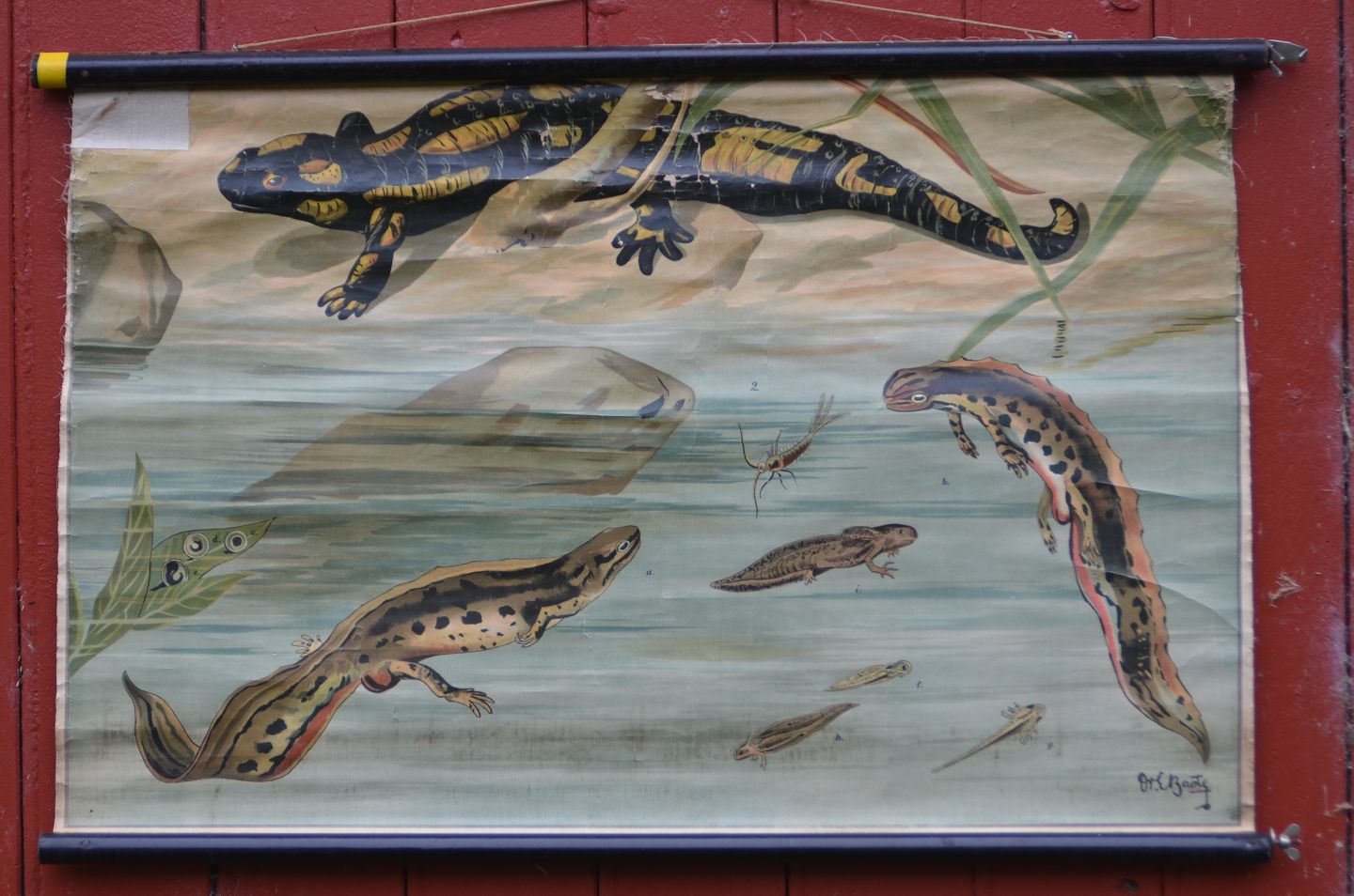 Anskuelsestavle med træstokke: Salamandere, Billedmål: 55 x 88 cm, (anskuelsestavle nr. 7)