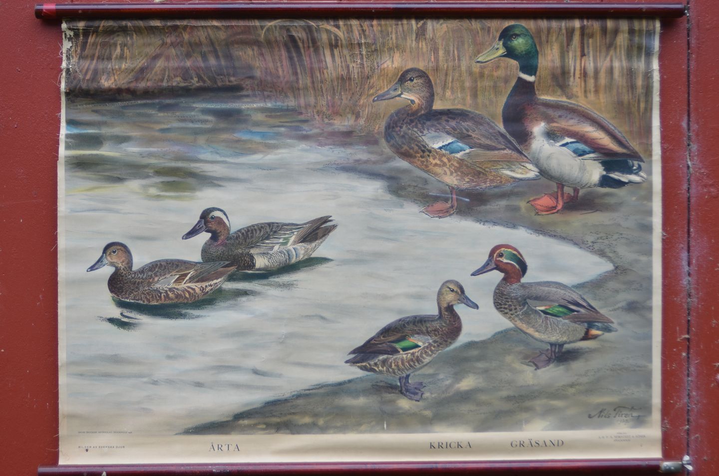 Anskuelsestavle med træstokke: Ænder, Billedmål: 70 x 105 cm, (anskuelsestavle nr. 13)