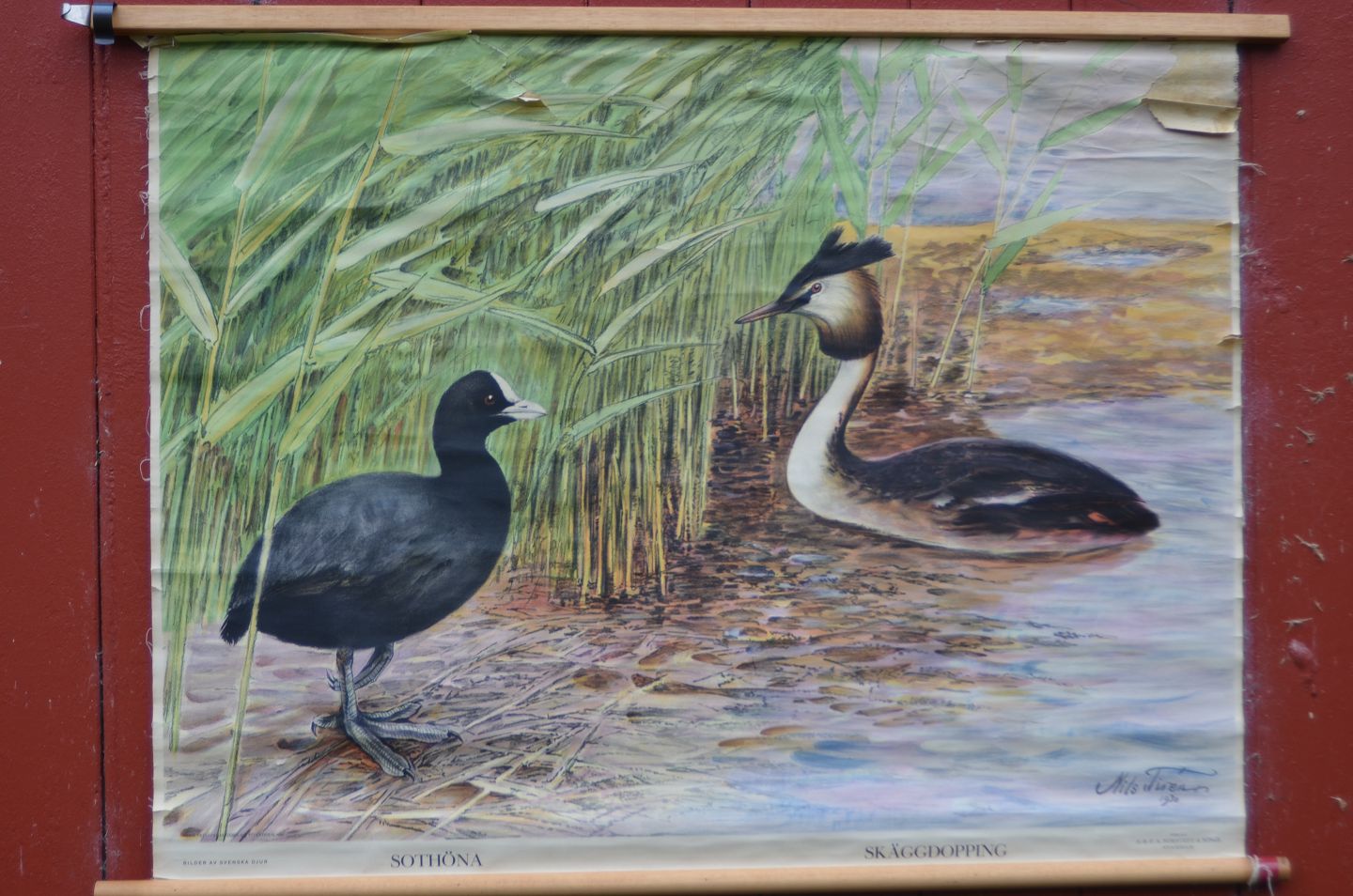 Anskuelsestavle med træstokke: Blishøne og lappedykker, Billedmål: 71 x 94 cm, (anskuelsestavle nr. 19)