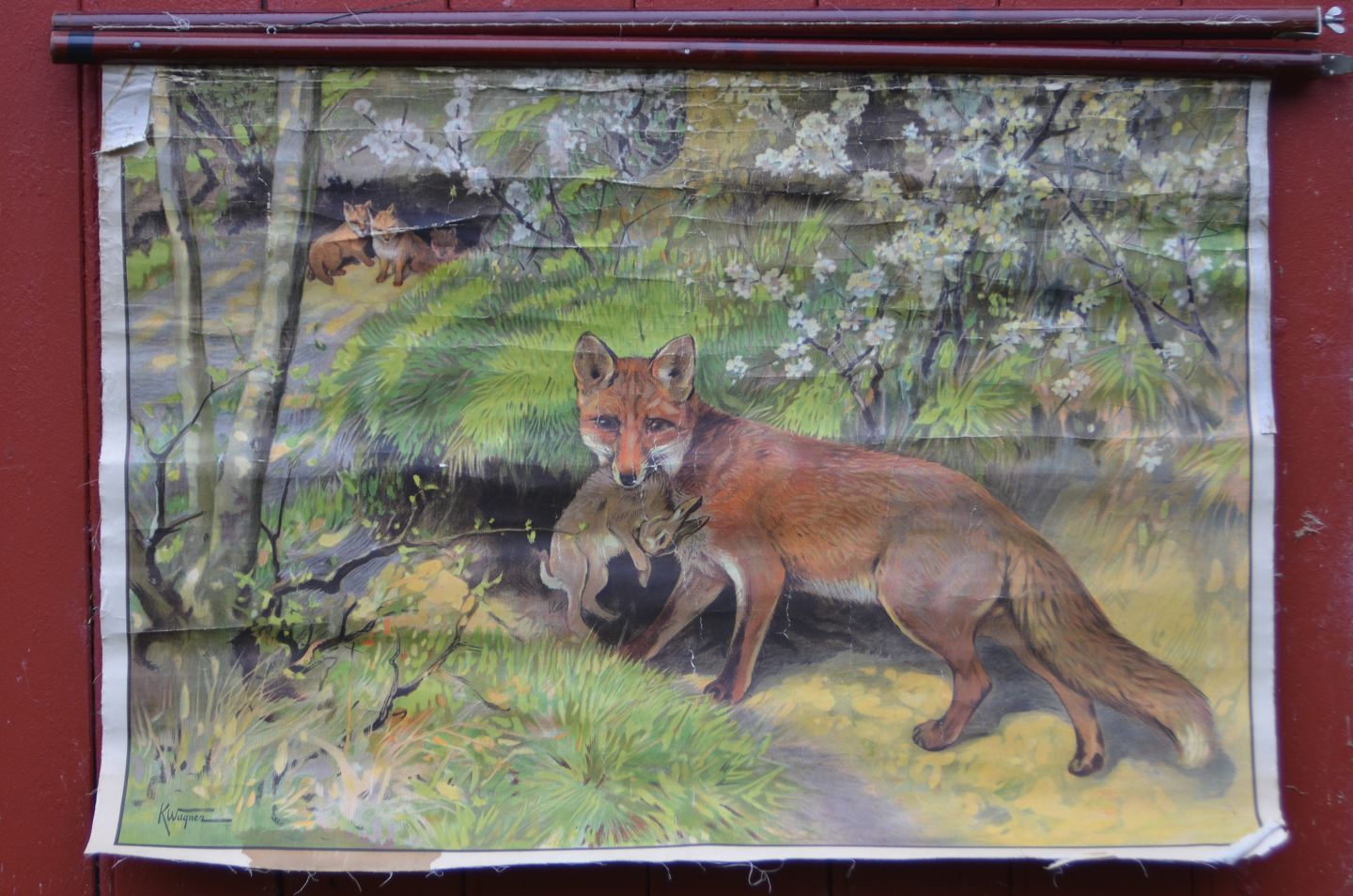 Anskuelsestavle med træstokke: Ræve, Billedmål: 61 x 84 cm, OBS Den ene træstok er løs og skal monteres!(anskuelsestavle nr. 23)