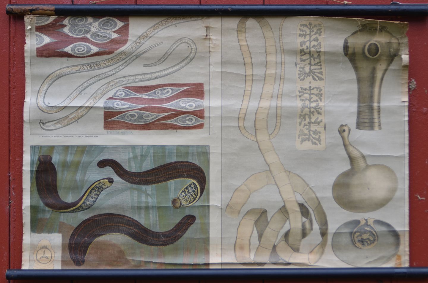 Anskuelsestavle med træstokke: Bændelorm, Billedmål: 55 x 84 cm, (anskuelsestavle nr. 25)