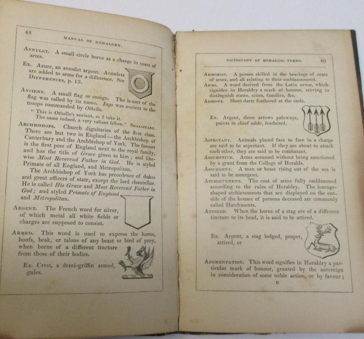 The Manual of Heraldry. London 1846. Printed for Jeremiah How. Med 400 træsnit. 17 x 10,5 cm.