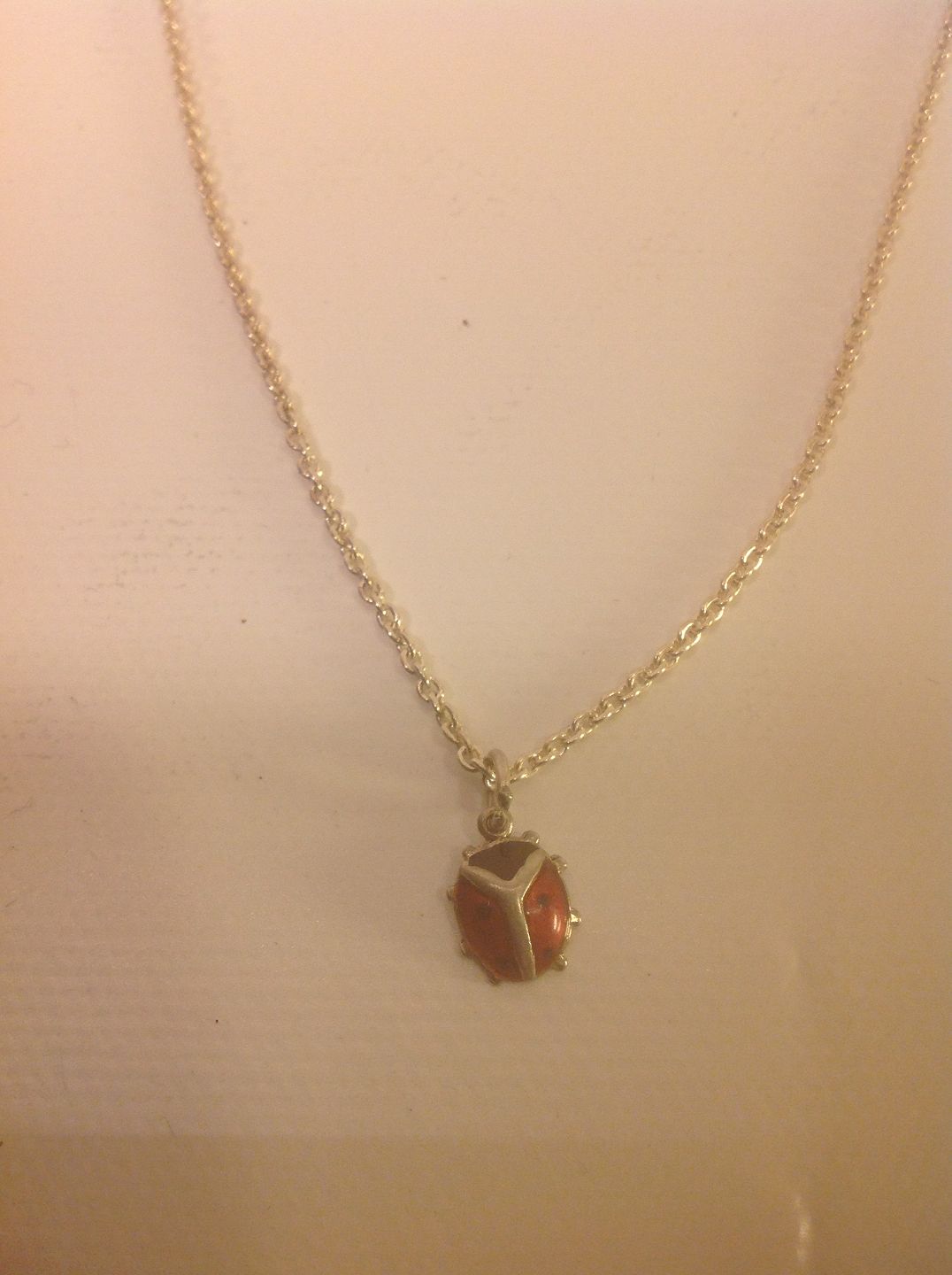 Sølv Vedhæng. som Mariehøne med Emalje.