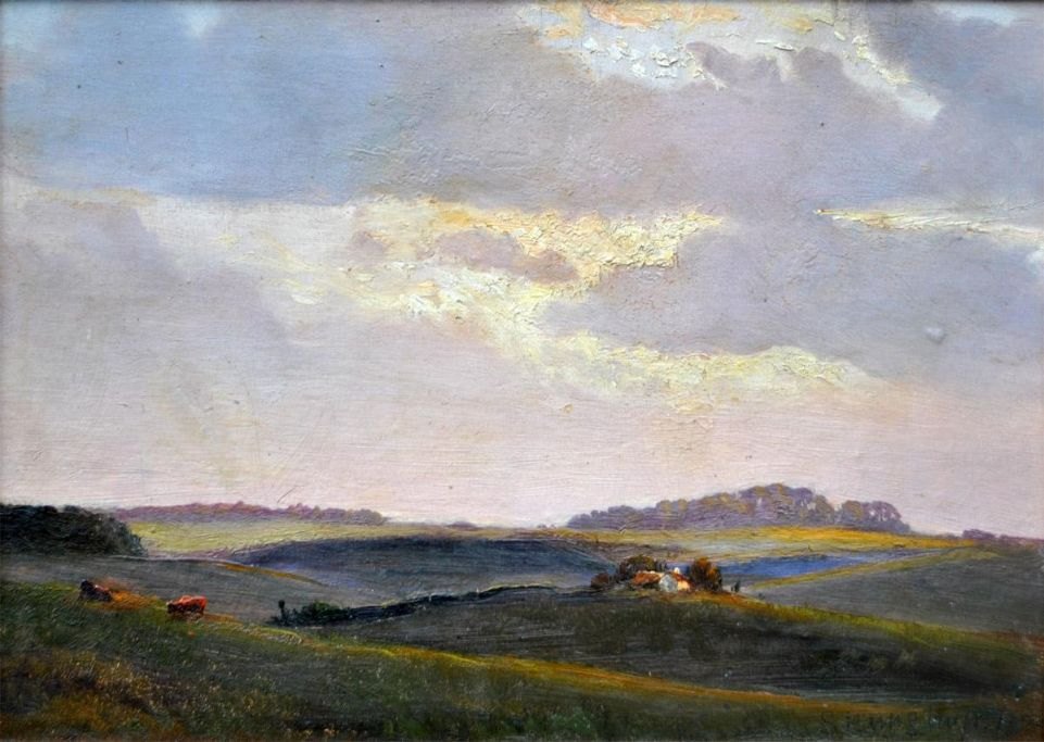Pedersen, Viggo (1854 - 1926) Danmark: Landskab sommer aften. Skamstrup.