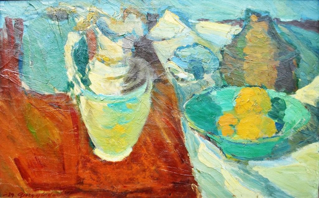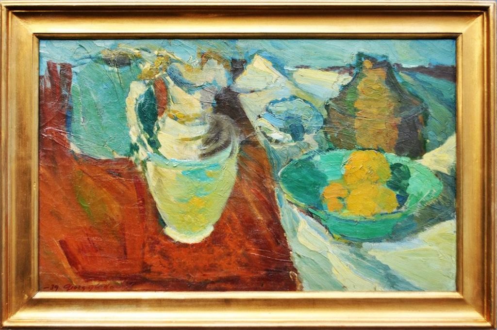 Glud, Georg (1901 - 1972) Danmark: Opstilling. Olie på lærred. 43 x 68 cm. Signeret.: Georg Glud - 39.  Indrammet: 52 x 79 cm.