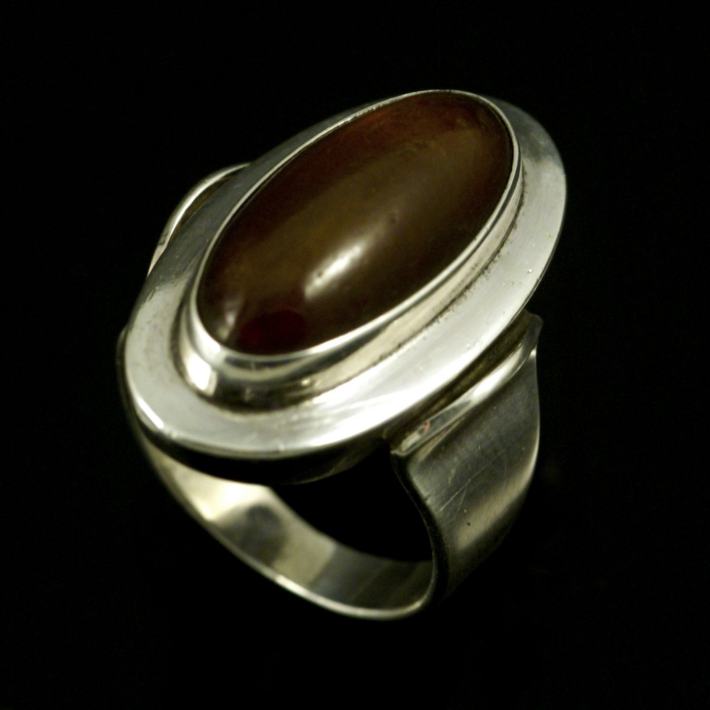 N.E. From. Ring i Sterling Sølv med rav. 1960erne