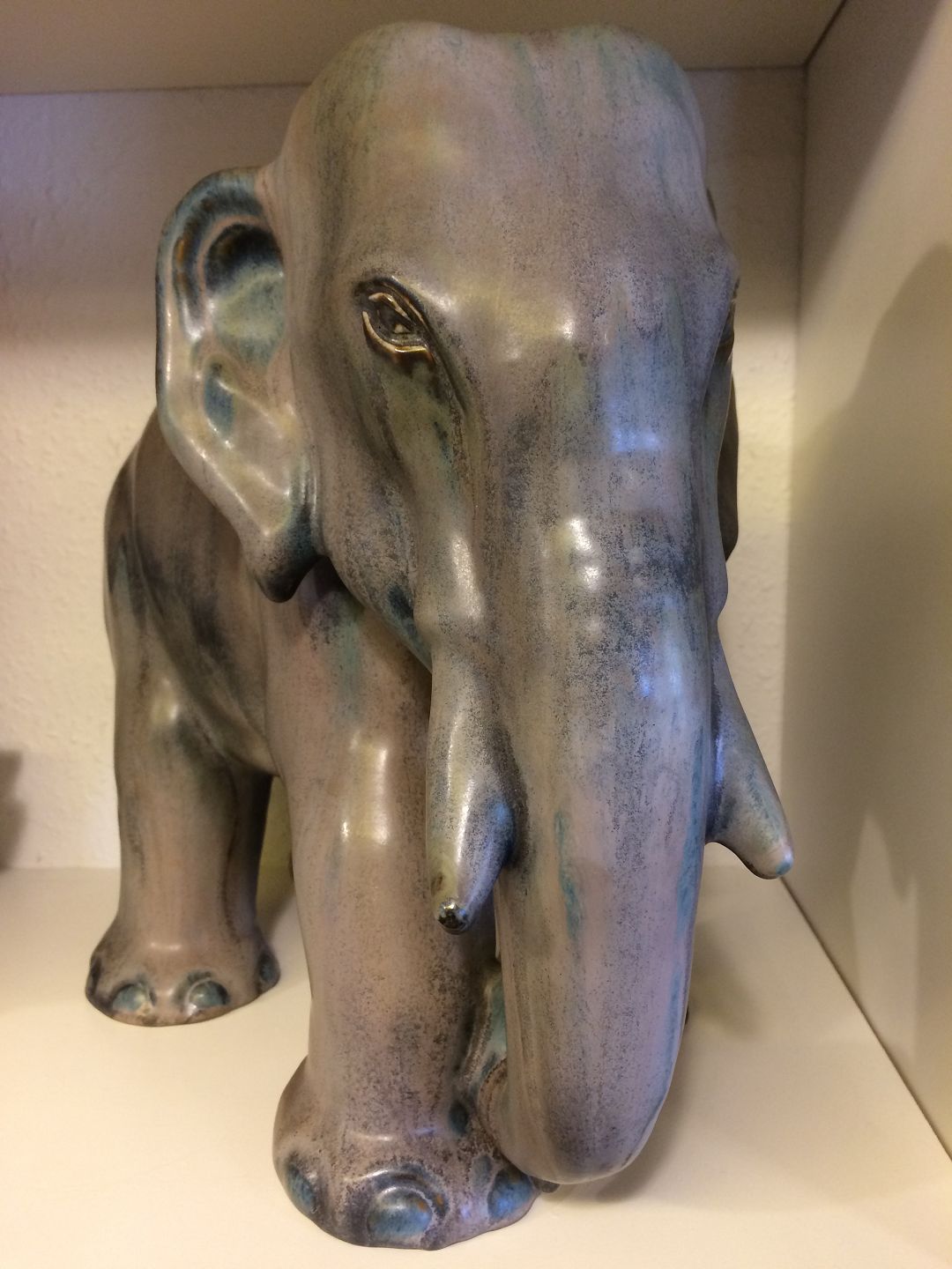 Elefant af Gunnar Nylund for Rørstrand. Højde 32 cm. Et bagben rep.