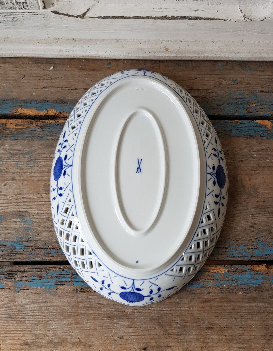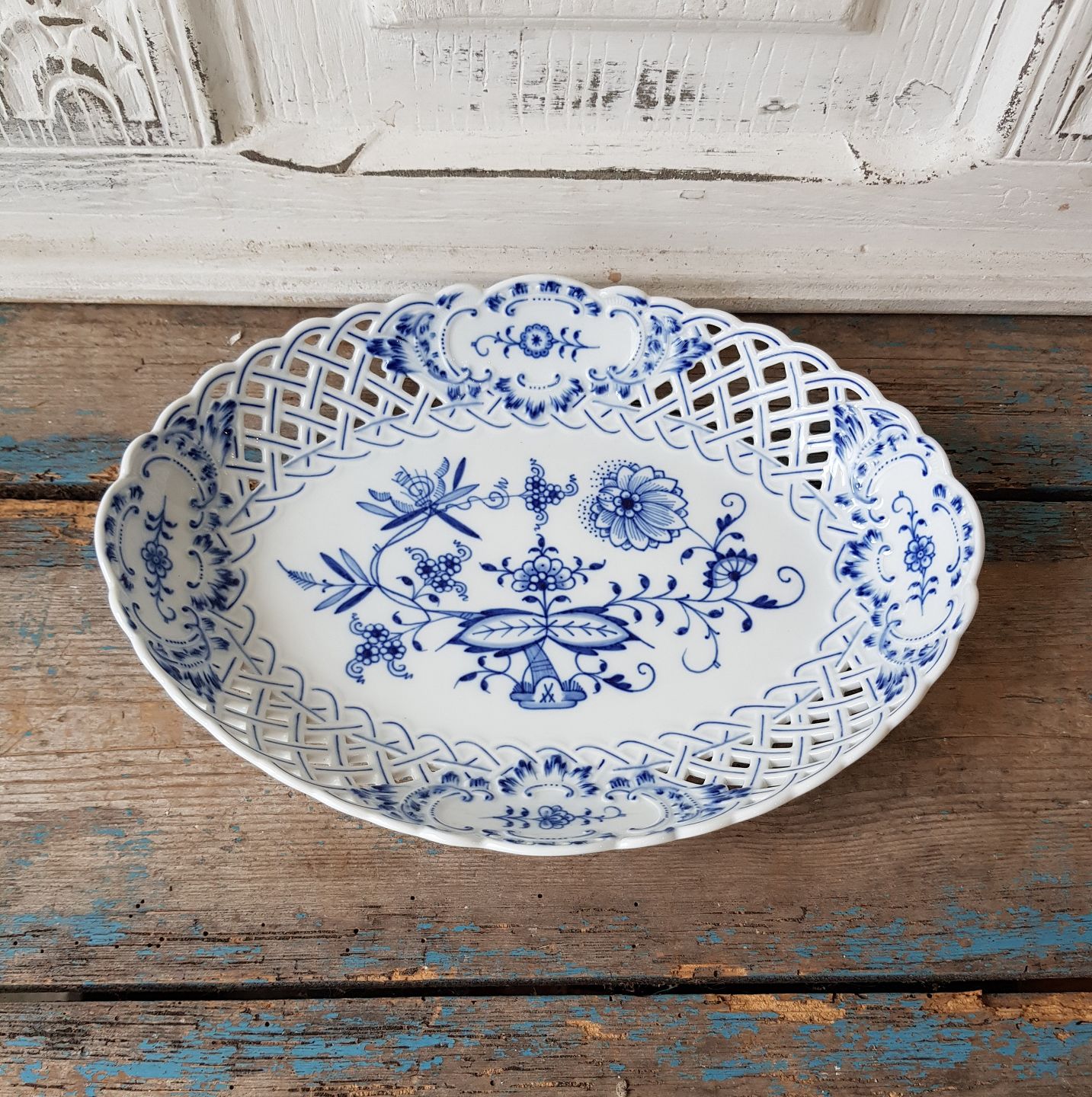 Meissen skål med gennembrudt kant, dekoreret med løgmønster