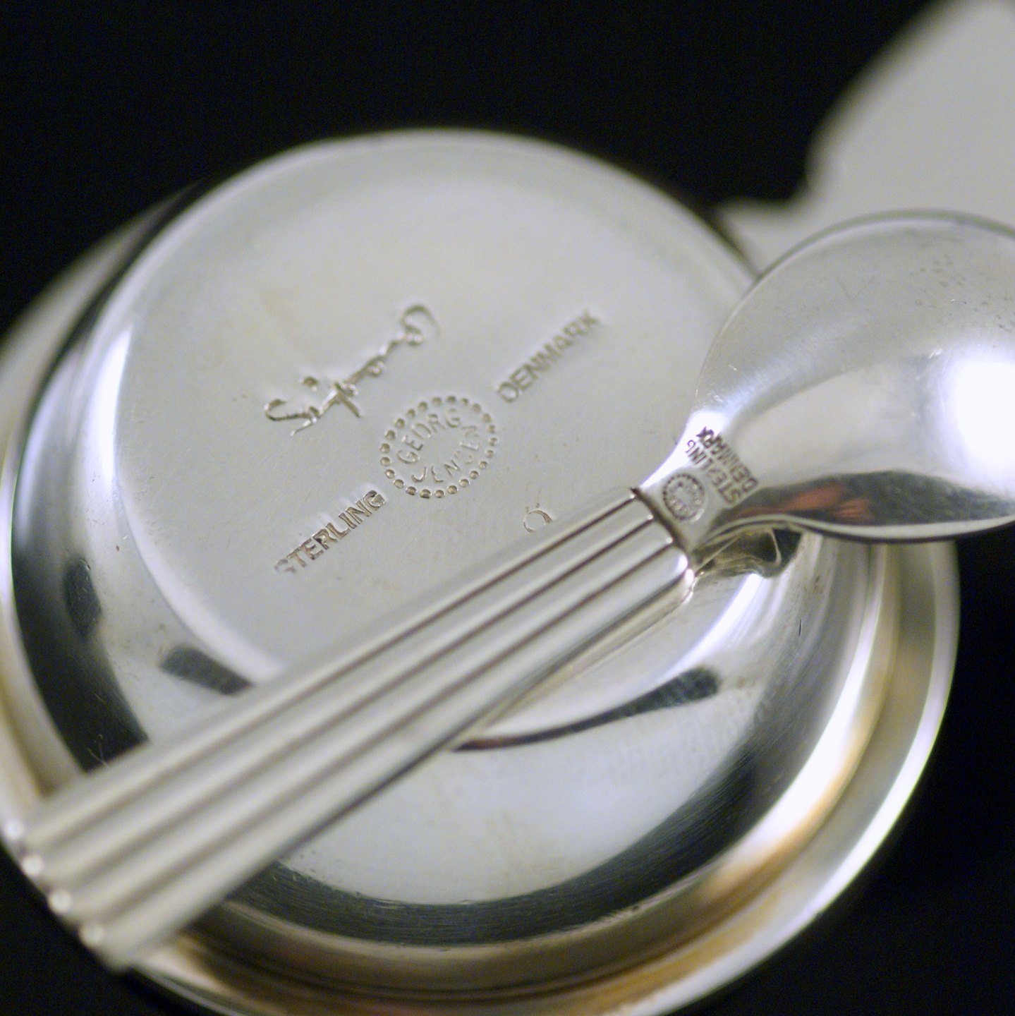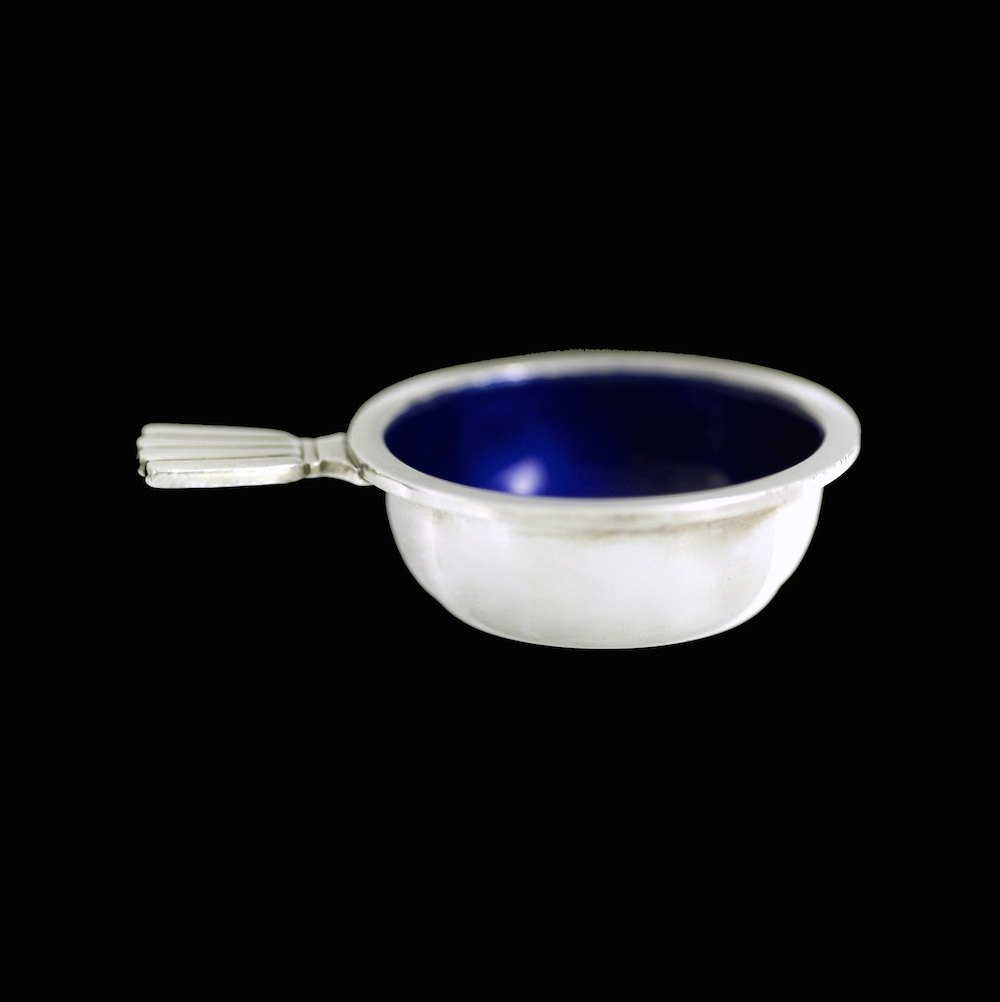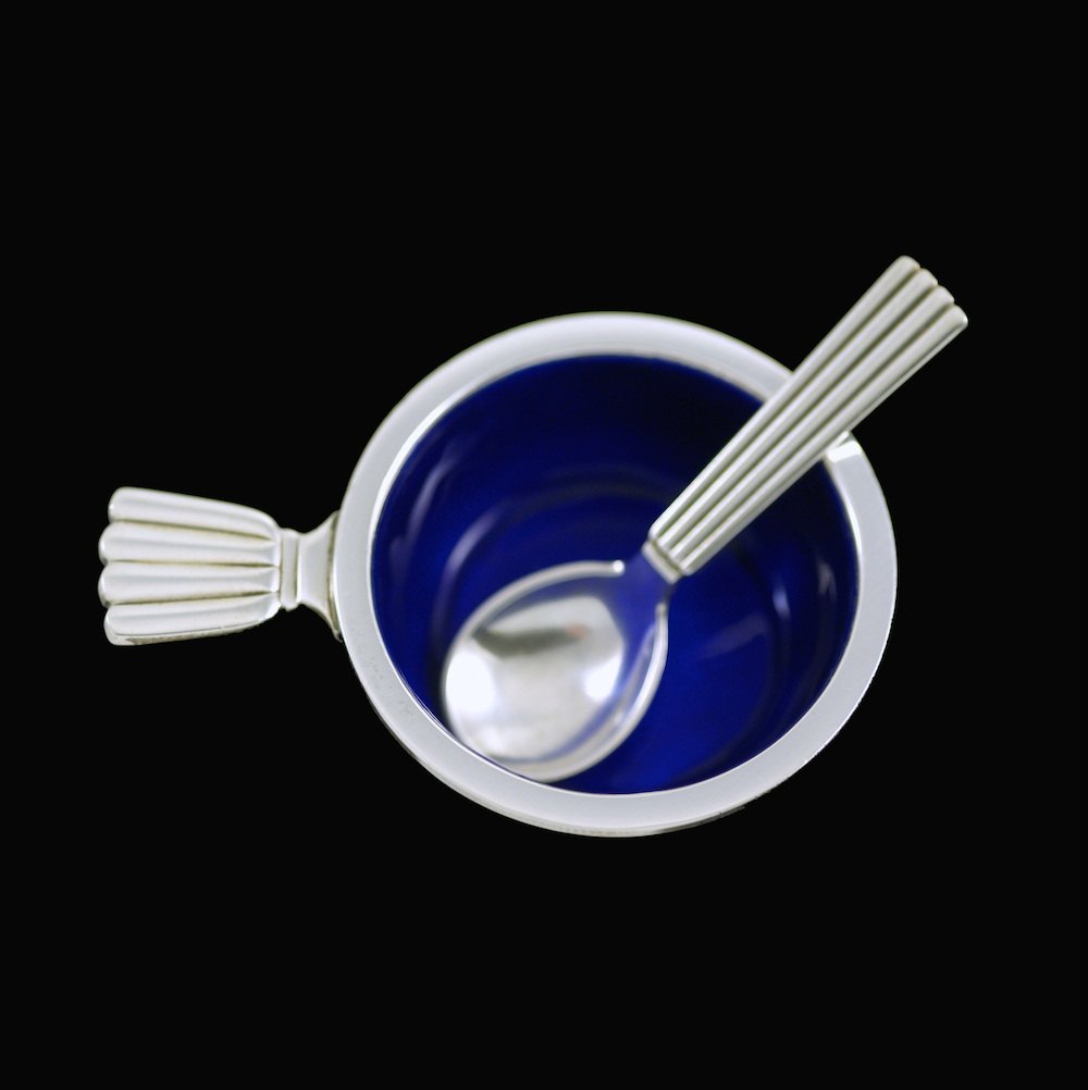Georg Jensen. Saltkar med blå emalje og tilhørende ske i sterling sølv #9 - Bernadotte