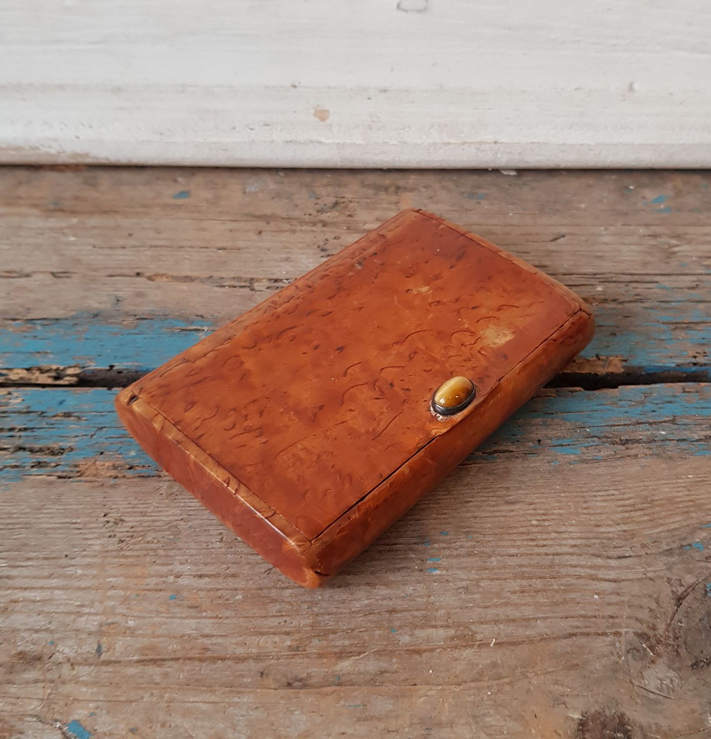 Tabatier af oliventræ prydet med cabochon slebet rav