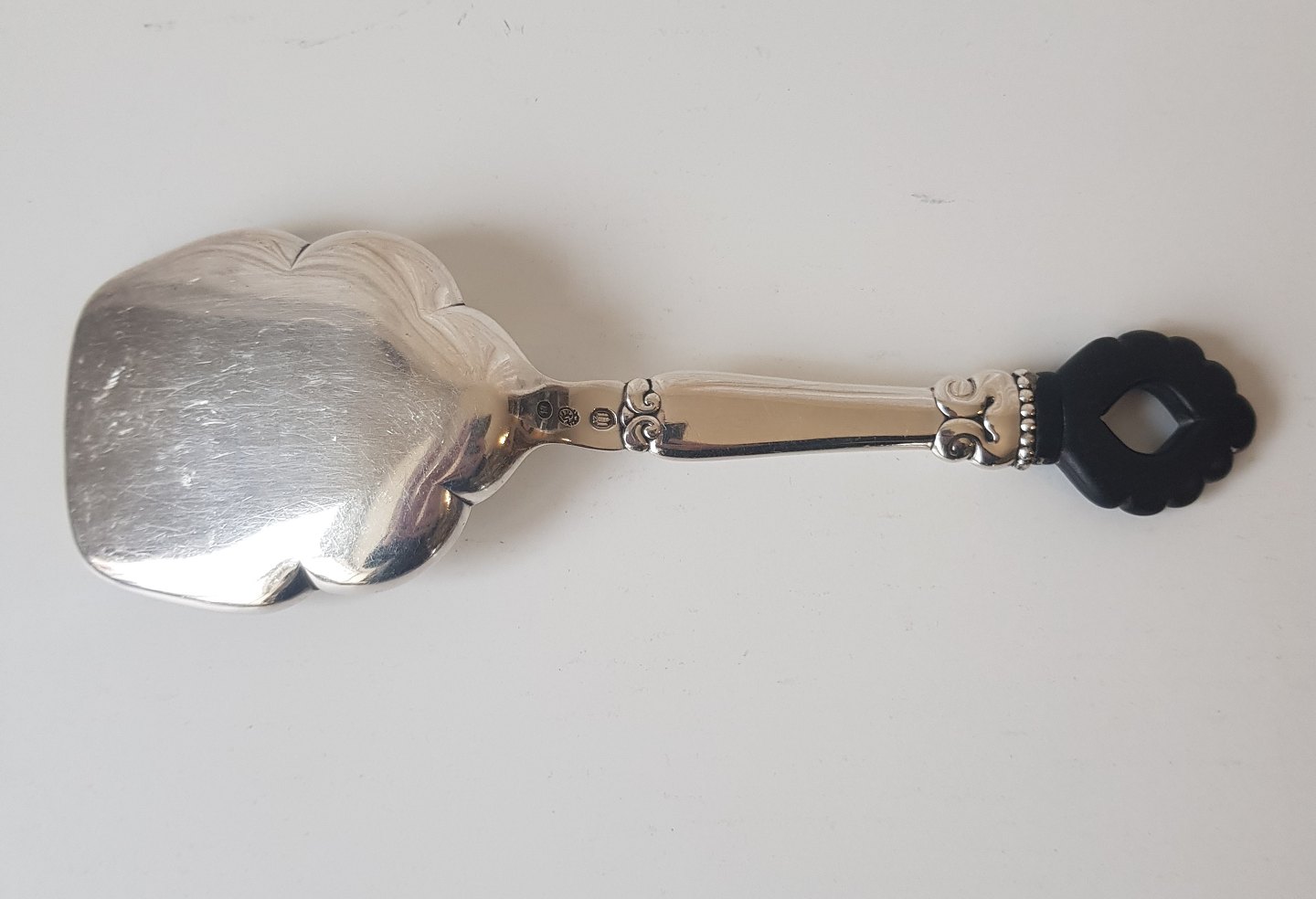 Serveringsspade i sølv med træhåndtag fra 1923 - 20,5 cm.
