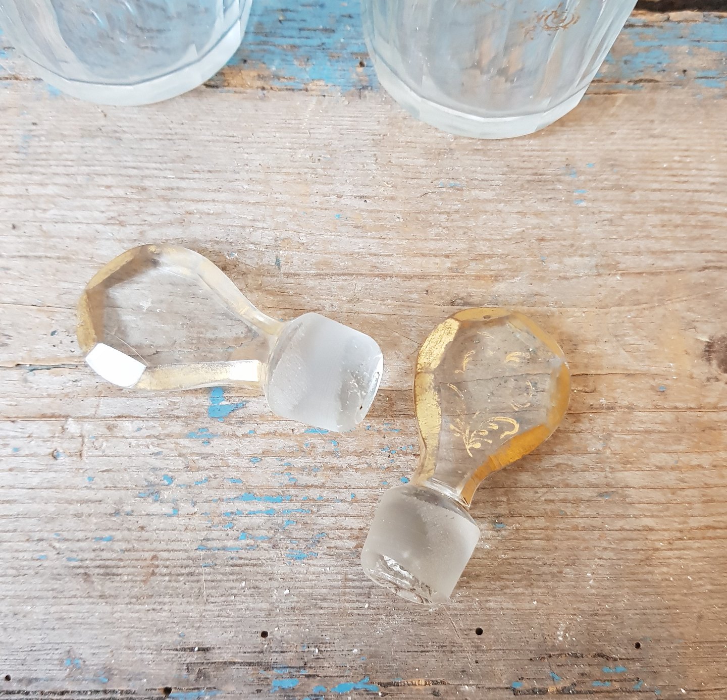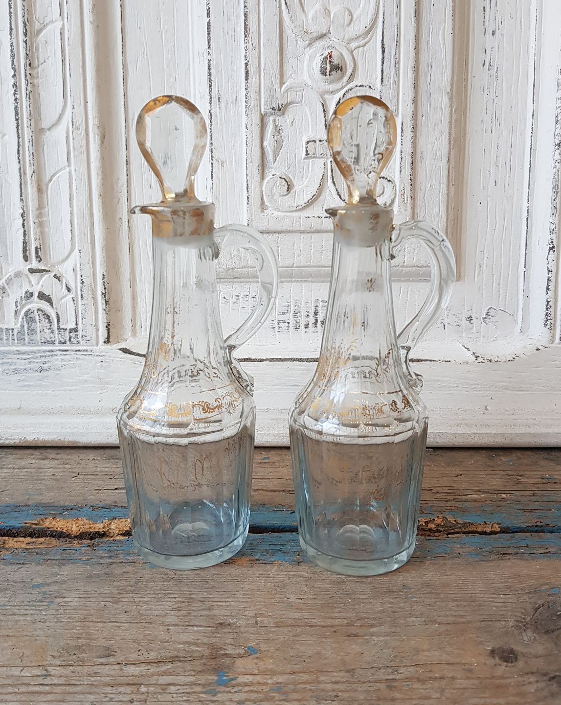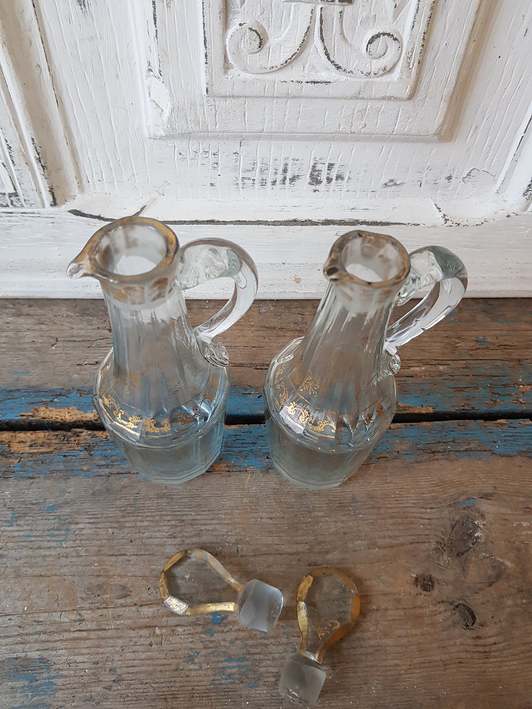 Par 1800tals Böhmiske krystal olie/eddike karafler dekoreret med guld.