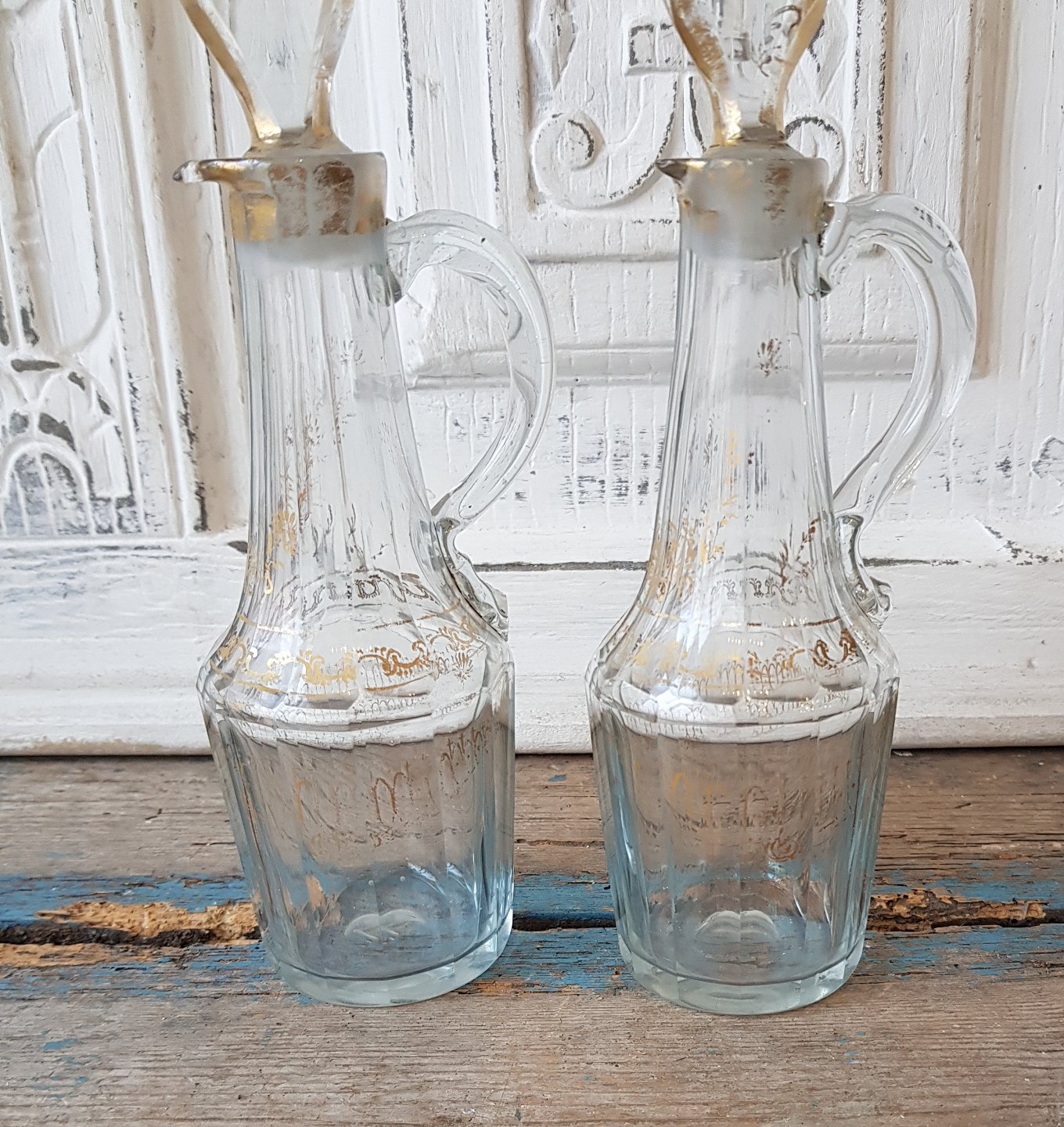 Par 1800tals Böhmiske krystal olie/eddike karafler dekoreret med guld