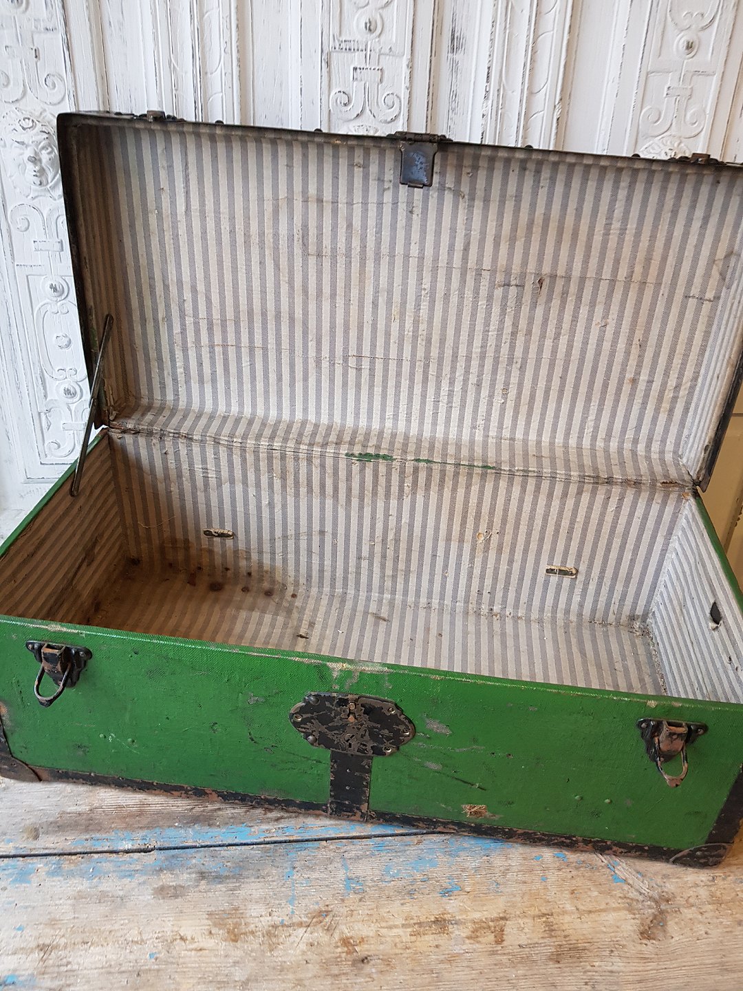 Gammel rejsekuffert med metalbeslag
