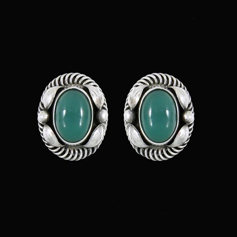 Leif Ulrich Daurup. Øreklips i sterling sølv med grøn agat.