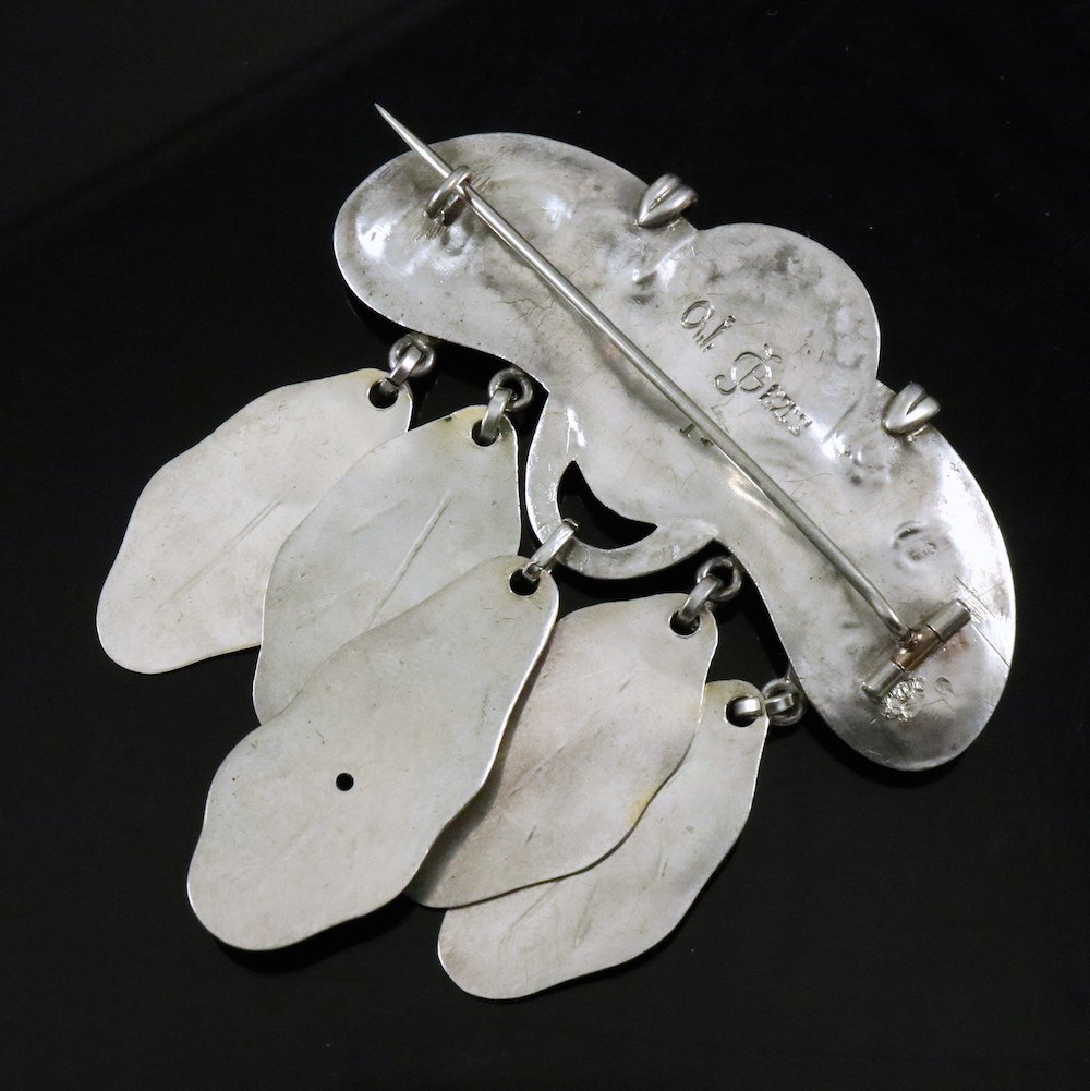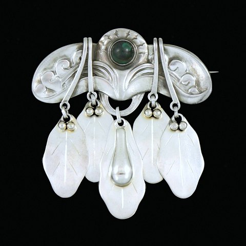 Georg Jensen Skønvirke Broche i 826S Sølv med Malakit. #14 - 1904-1908 stempler.
