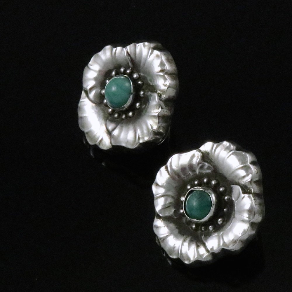 Georg Jensen. Øreklips i Sterling Sølv med Amazonit #49 - 1933-44.