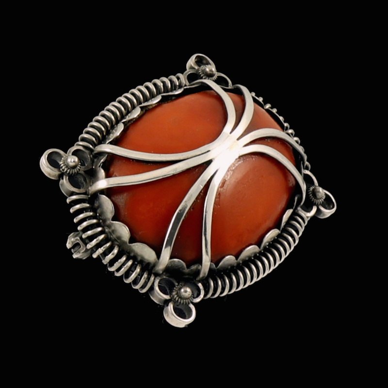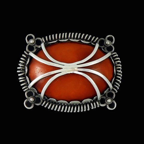 Bernhard Hertz. Skønvirke Broche i Sølv med rav.