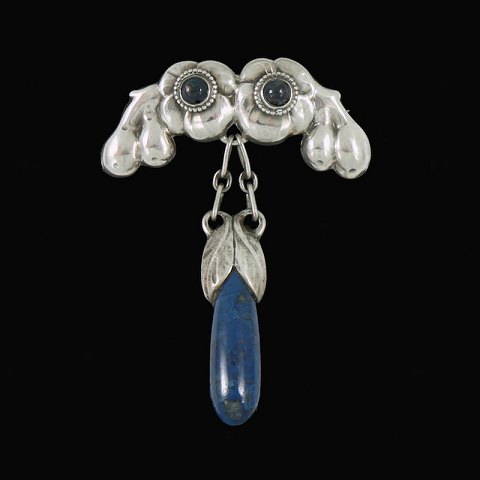 Evald Nielsen. Skønvirke Broche i Sølv med Lapis Lazuli.