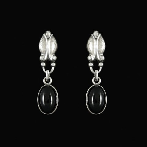 Georg Jensen. Øreringe i sterlingsølv med Onyx #17.