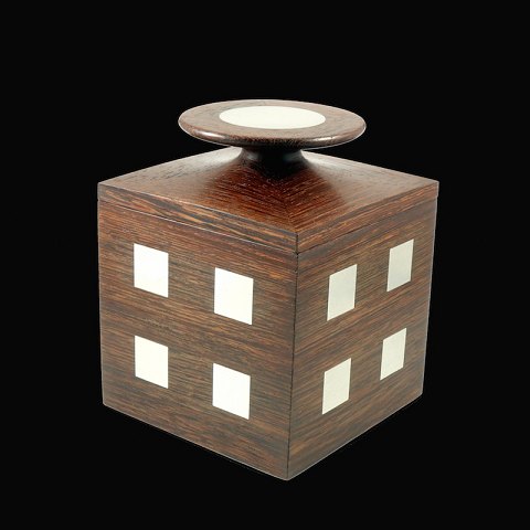 Hans Hansen. Æske med låg i moseeg med indlagt sterling sølv. 1960erne