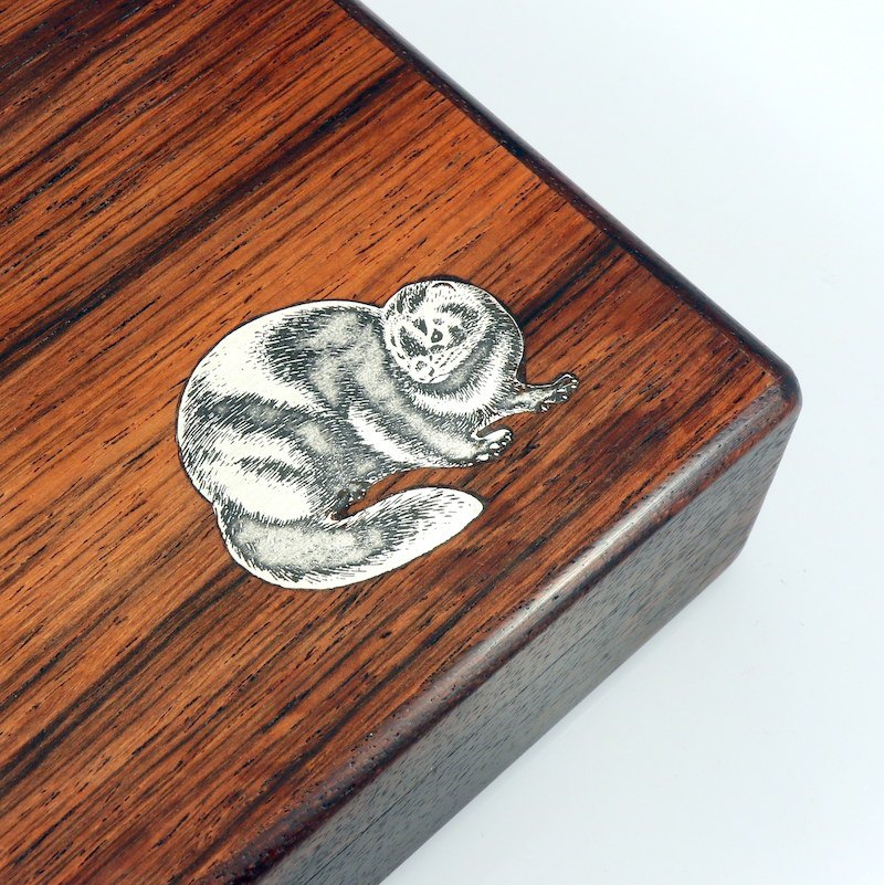 Robert Dalgas Lassen. Æske i Rio-Palisander med sterling sølv intarsia. 1960erne