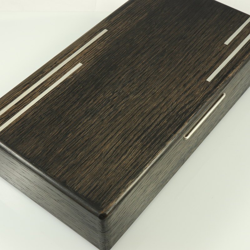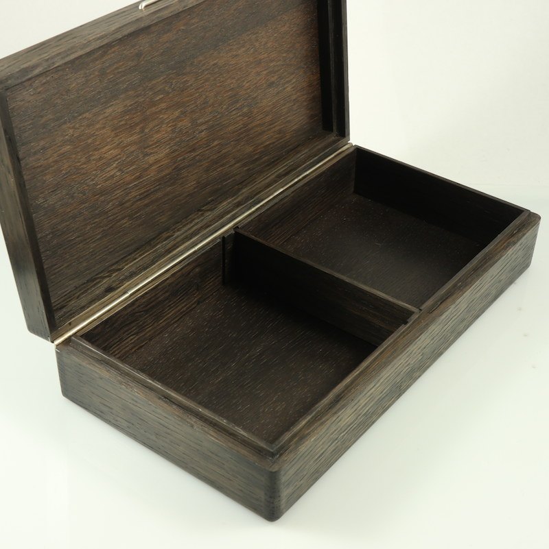 Andersen & Søhoel. Æske i moseeg med sterling sølv intarsia. 1960erne.