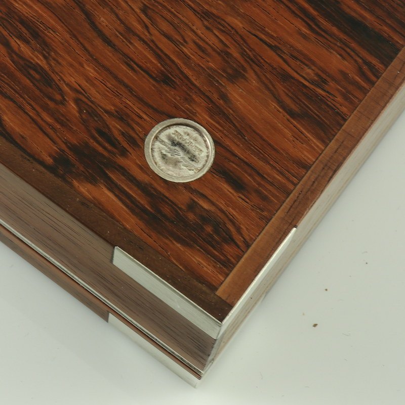 Hans Hansen. Æske i Rio-Palisander med indlagt sterling sølv. 1960erne.