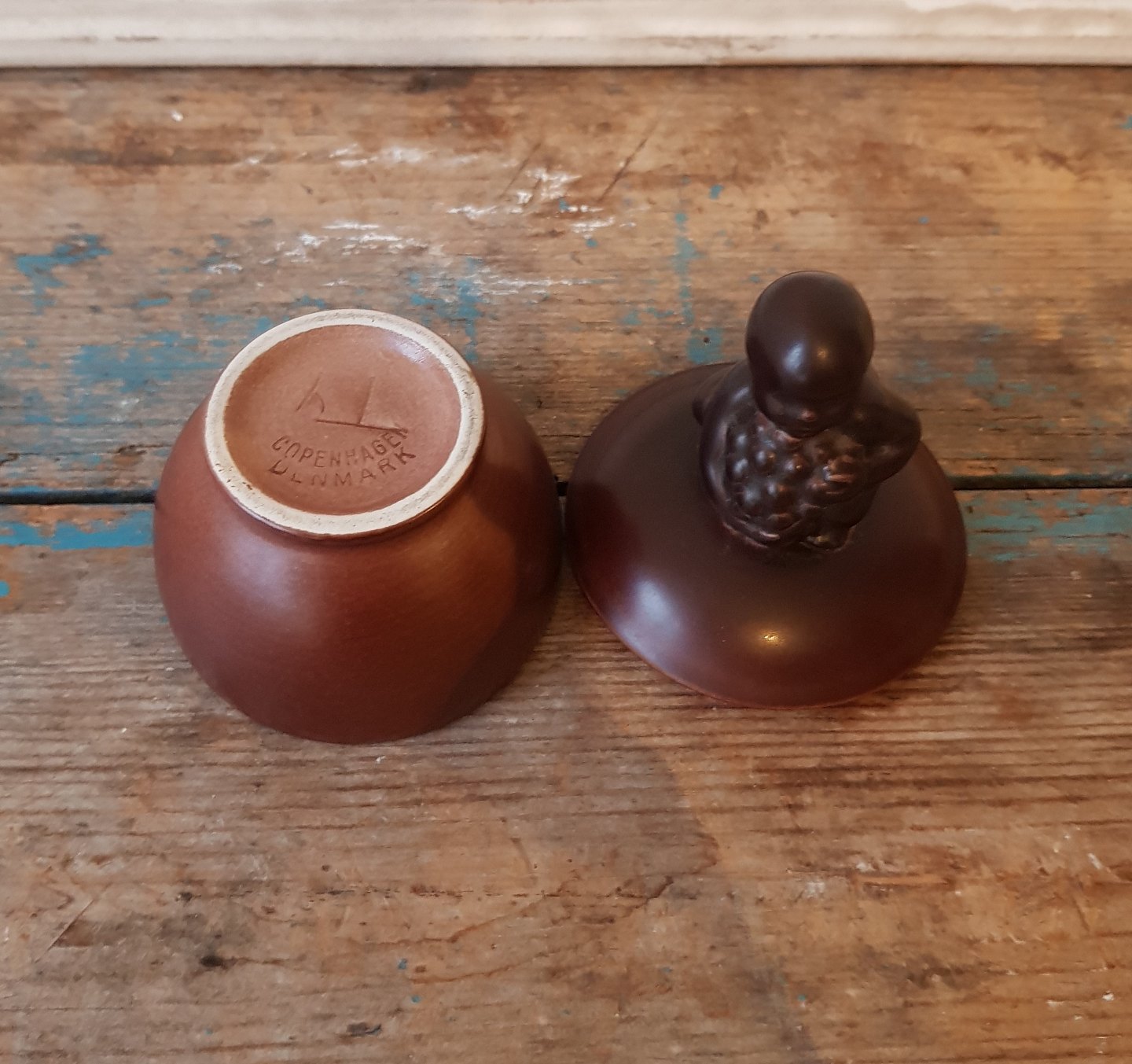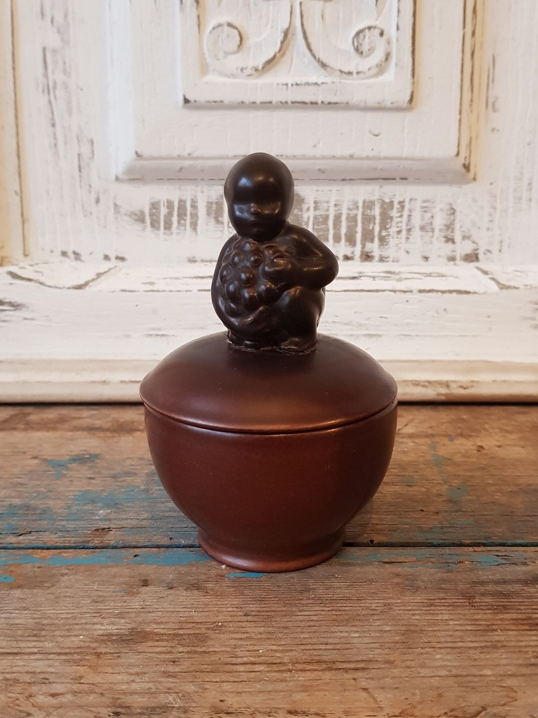 Aluminia lille lågskål med dreng med drueklase på låget.