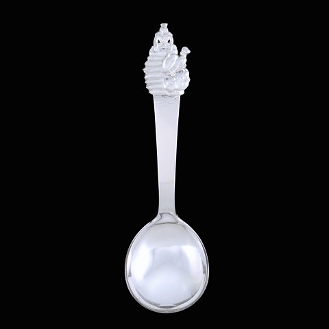 H.C. Andersen Eventyrbestik. 'Prinsessen på ærten'. Rund barne/dessert i sølv med motiv fra H.C. Andersens eventyr. L. 15 cm.