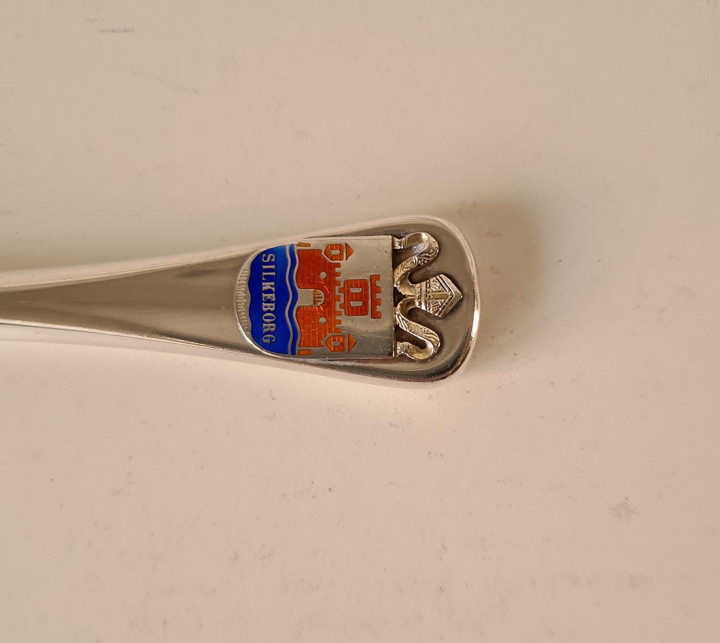 Patricia kapselåbner i sølv med Silkeborgs byvåben i emalje.