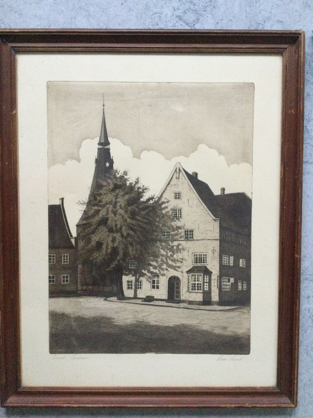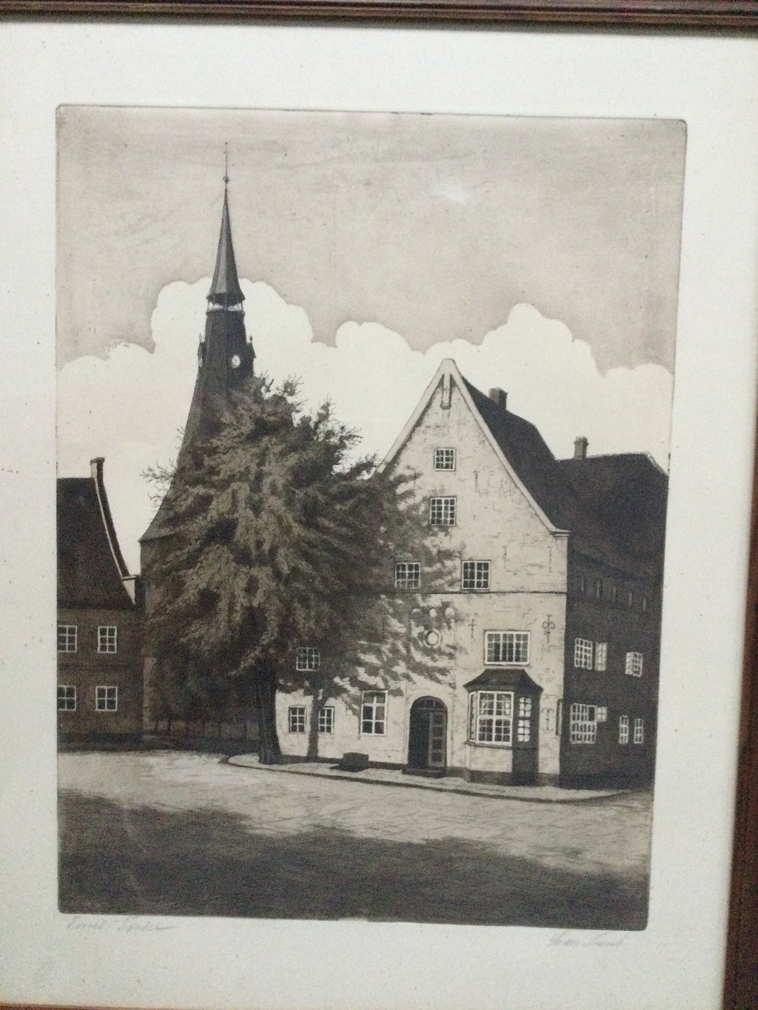 Radering af Søren Frank - Gavlhuset på Torvet i Tønder.