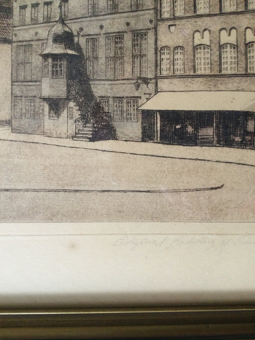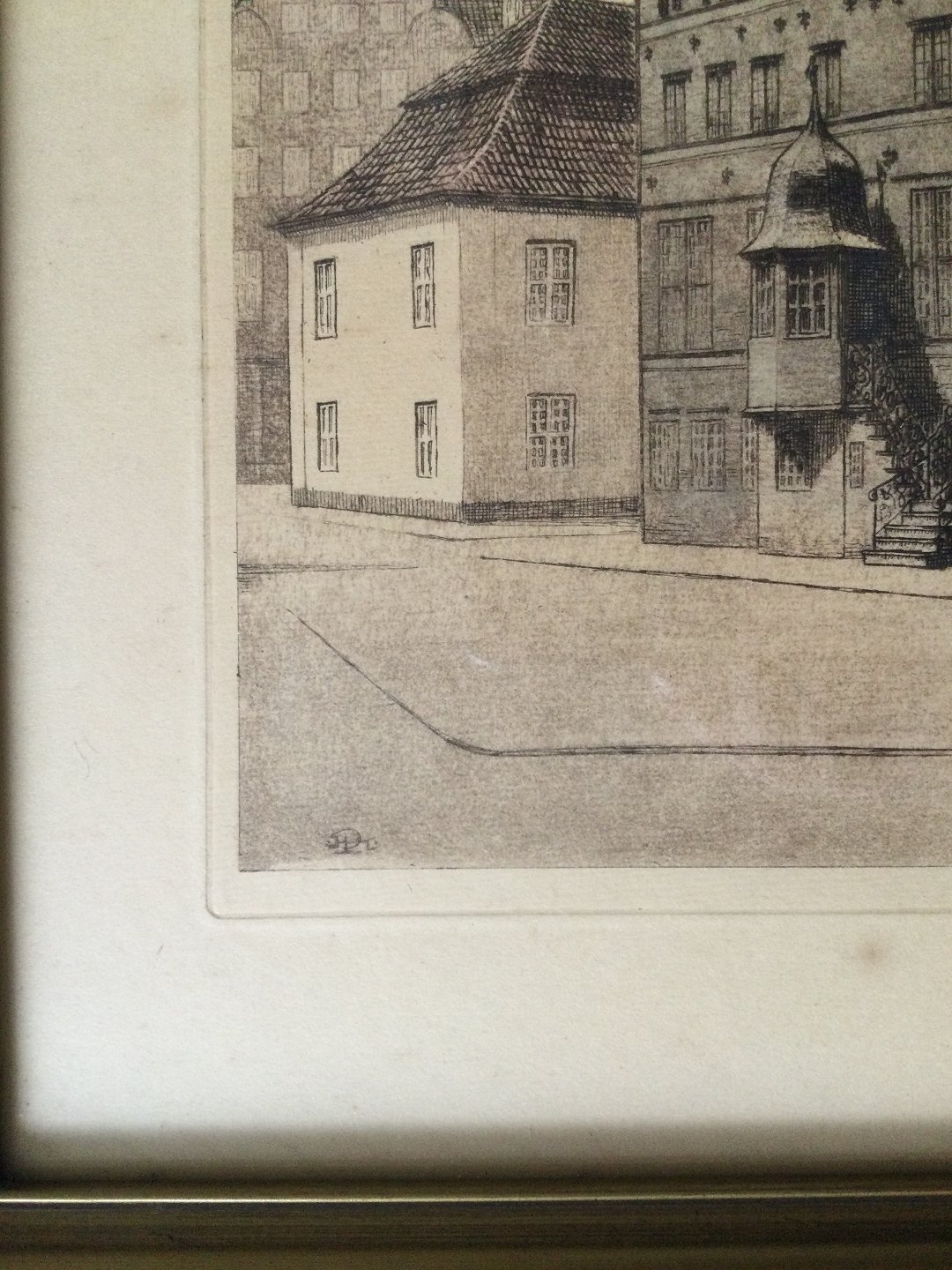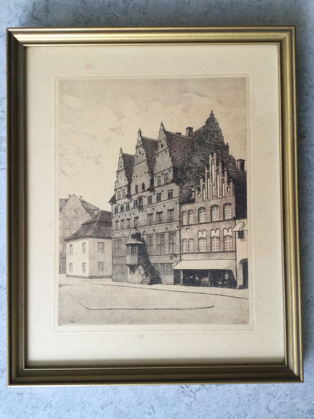 Text zugänglich auf Dänische: Radering af Peter Holm - Jens Bangs Stenhus, Østeraa, Aalborg
