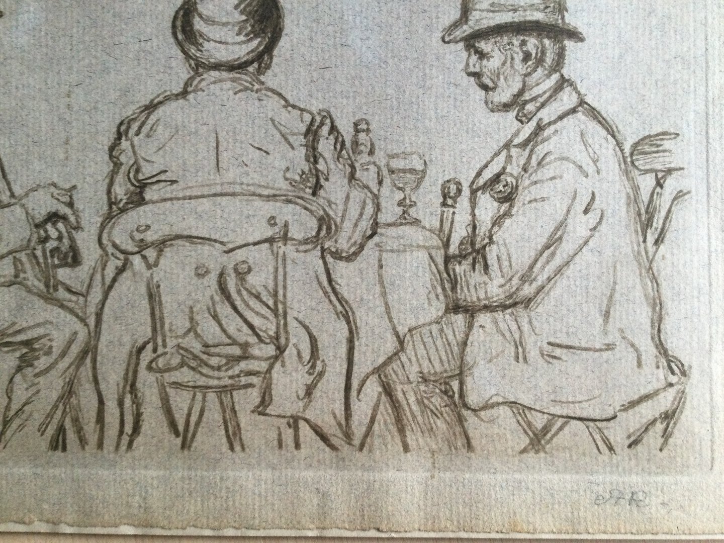 Radering på papir monteret på pap.