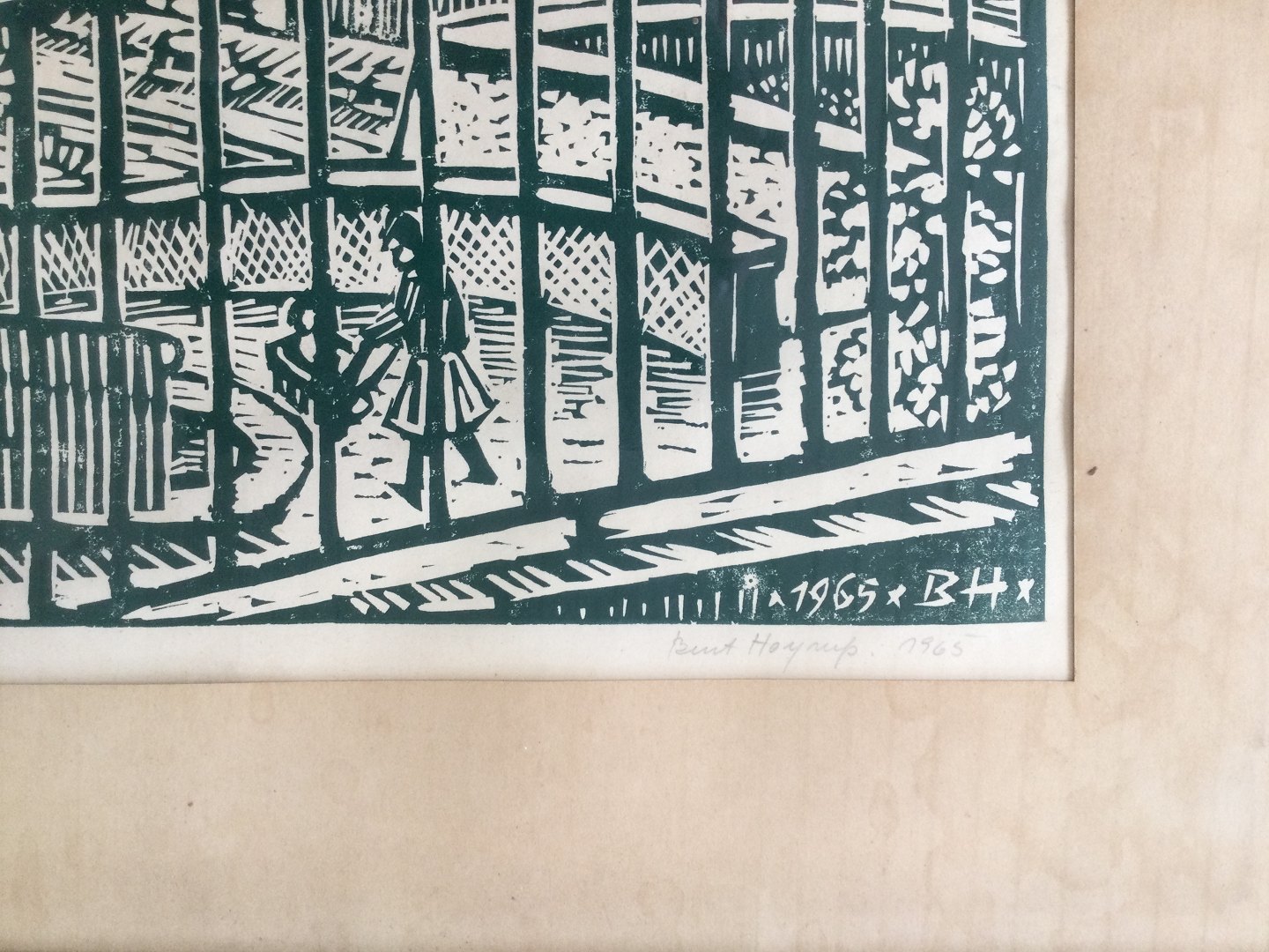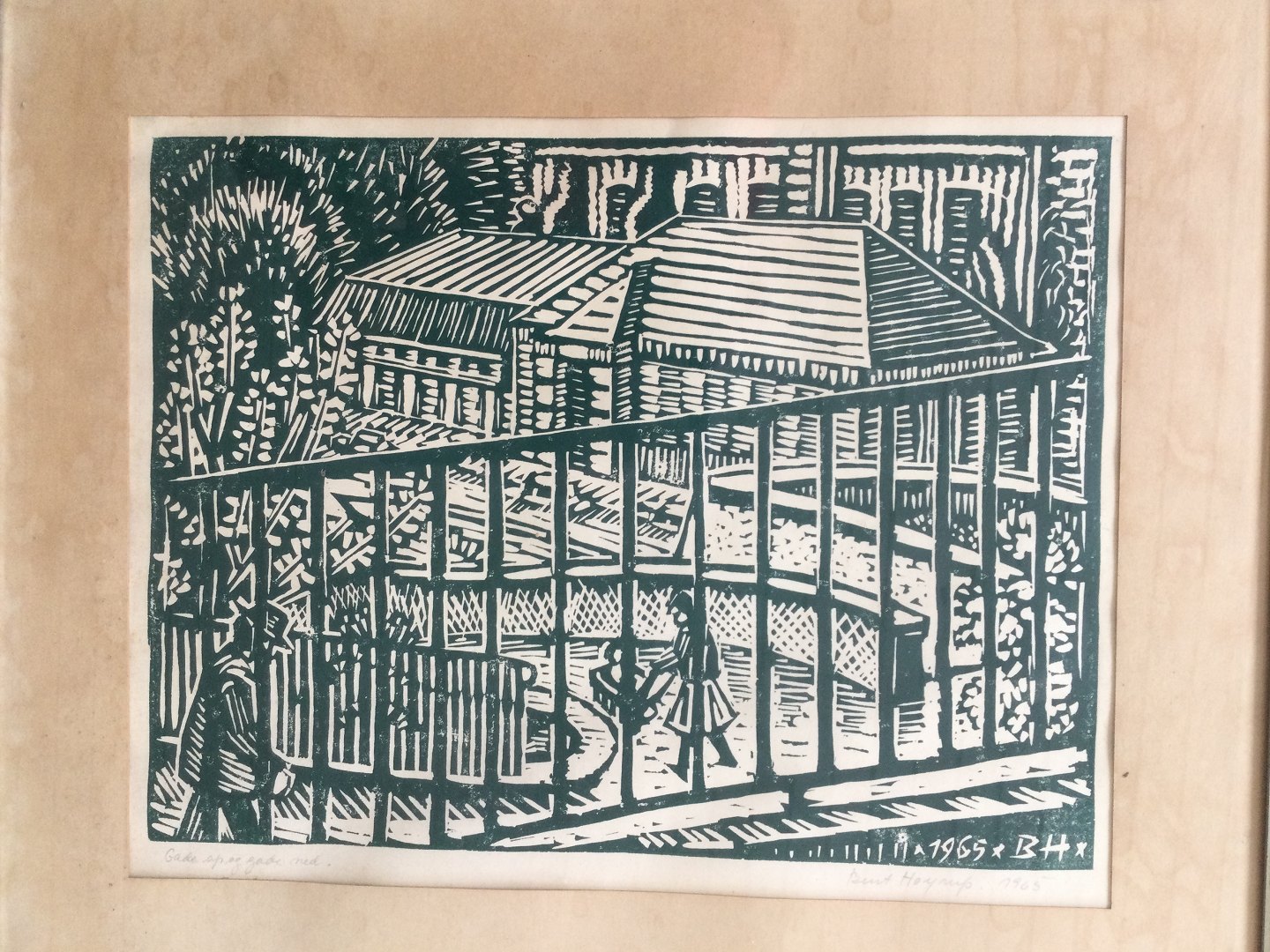 Træsnit af Bent Høyrup 1965 - "Gade op og gade ned"