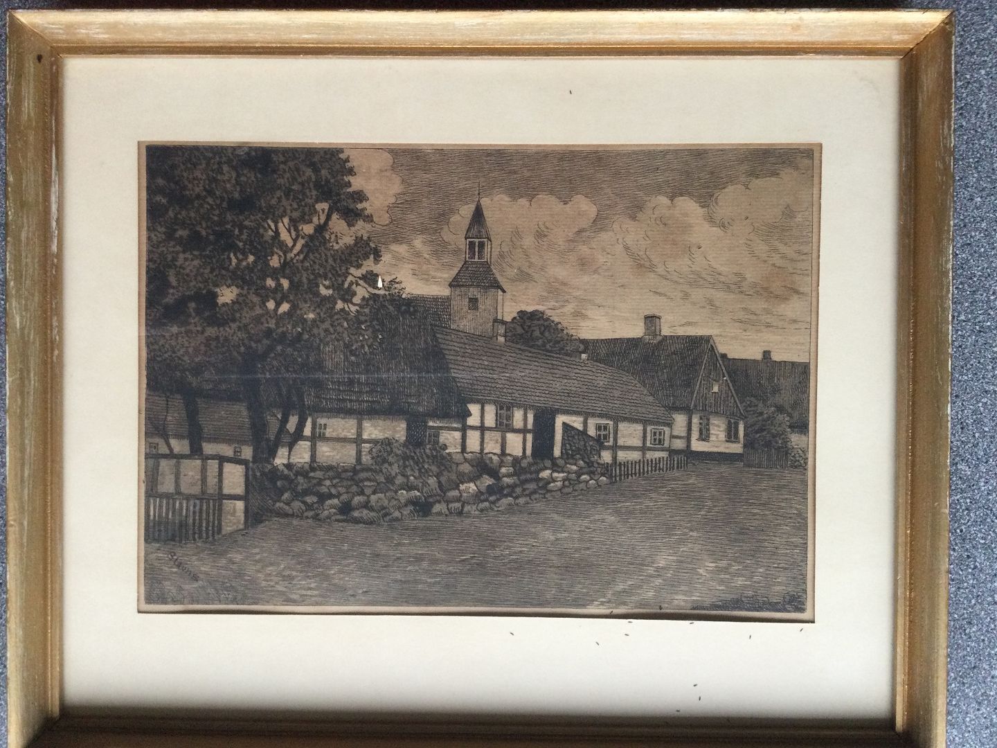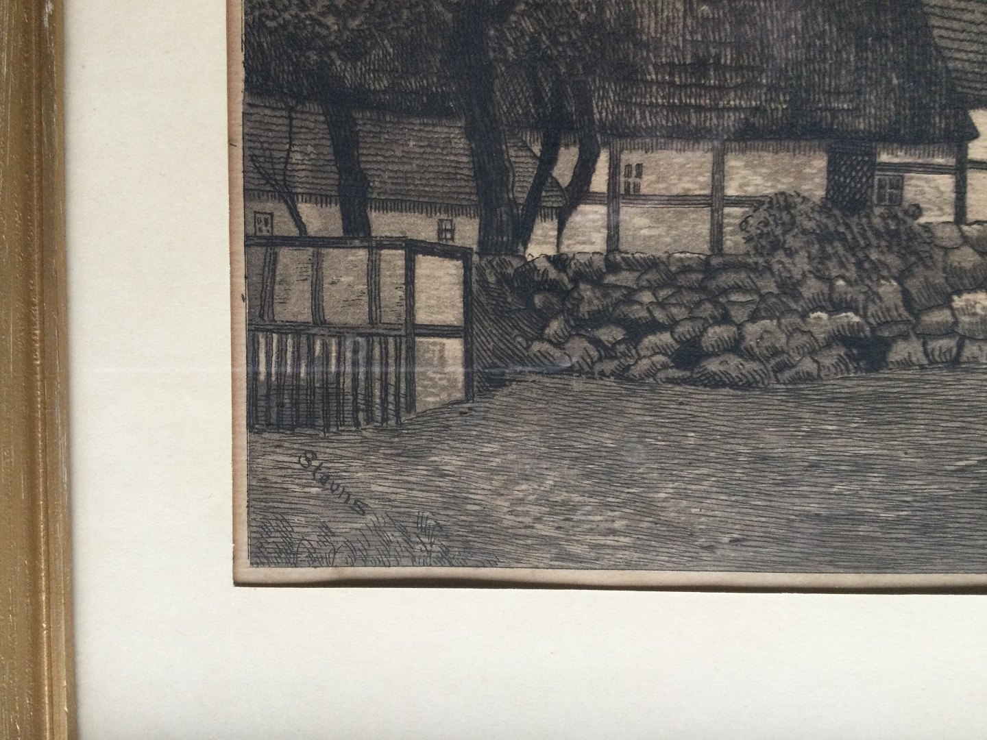 Text zugänglich auf Dänische: Radering af A.E. Jensen-Stevns - gadeparti fra Gudhjem, Bornholm.