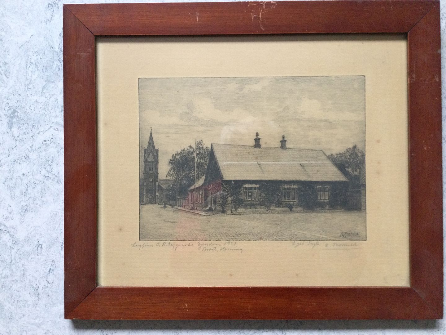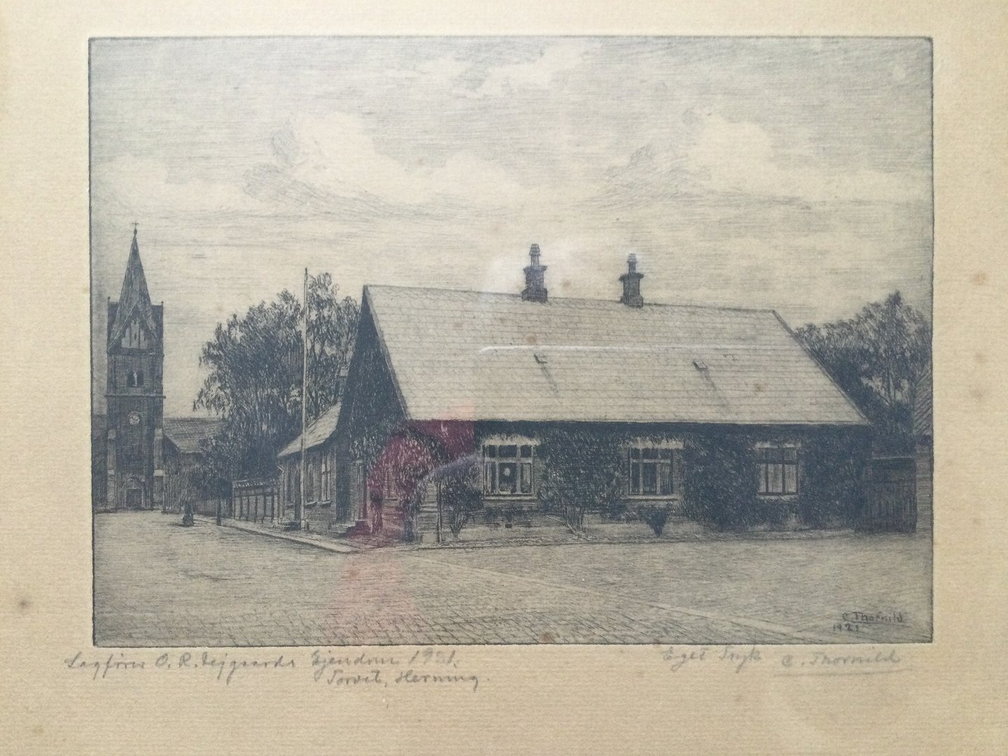 Text zugänglich auf Dänische: Radering af Chr. Thornild - Torvet i Herning 1921.