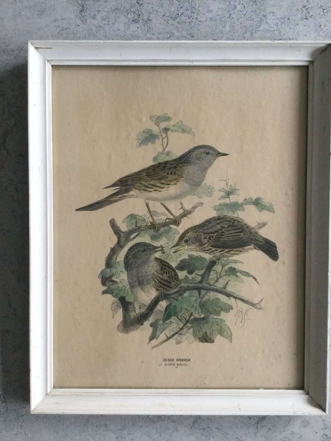 Litografisk tryk 1907 - 3 Jernspurve på gren.