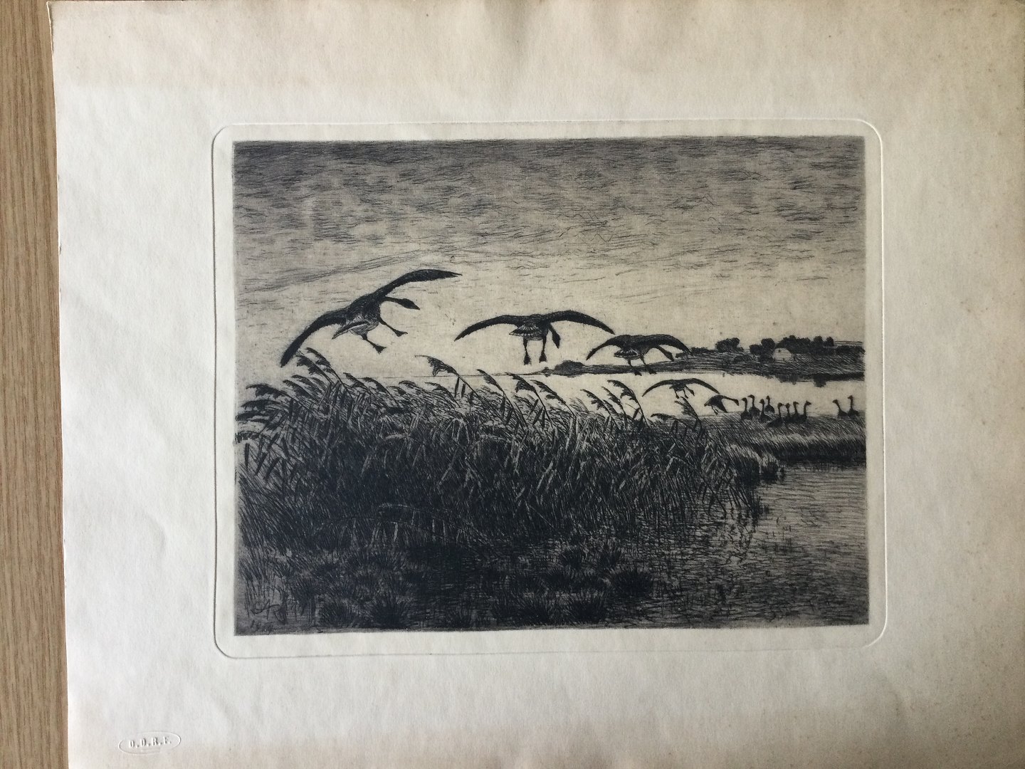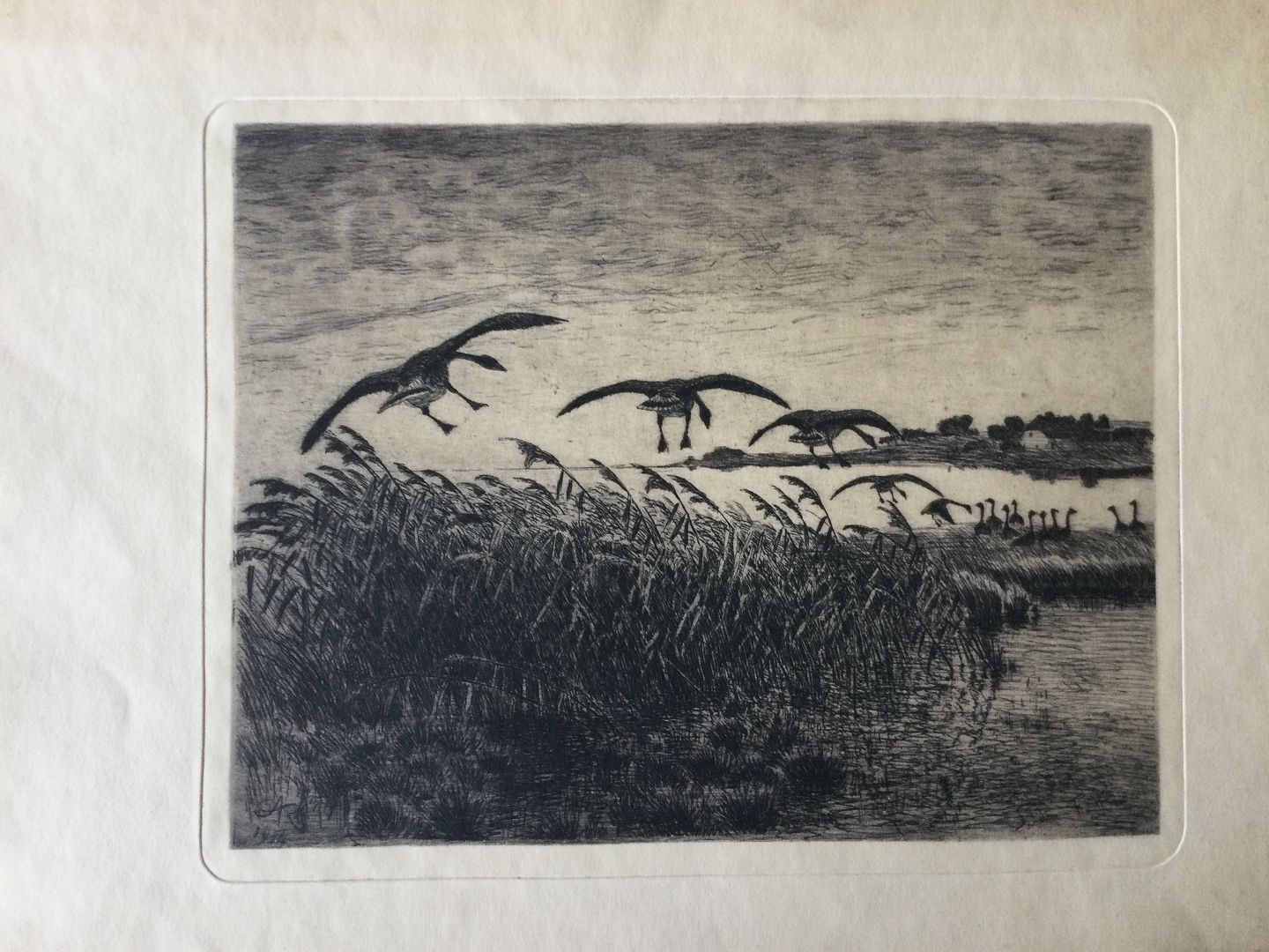 Flyvende gæs over sø 1914.