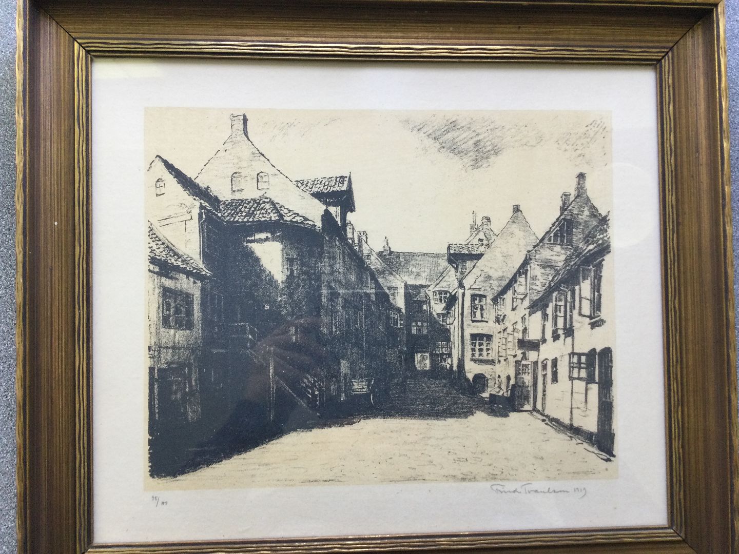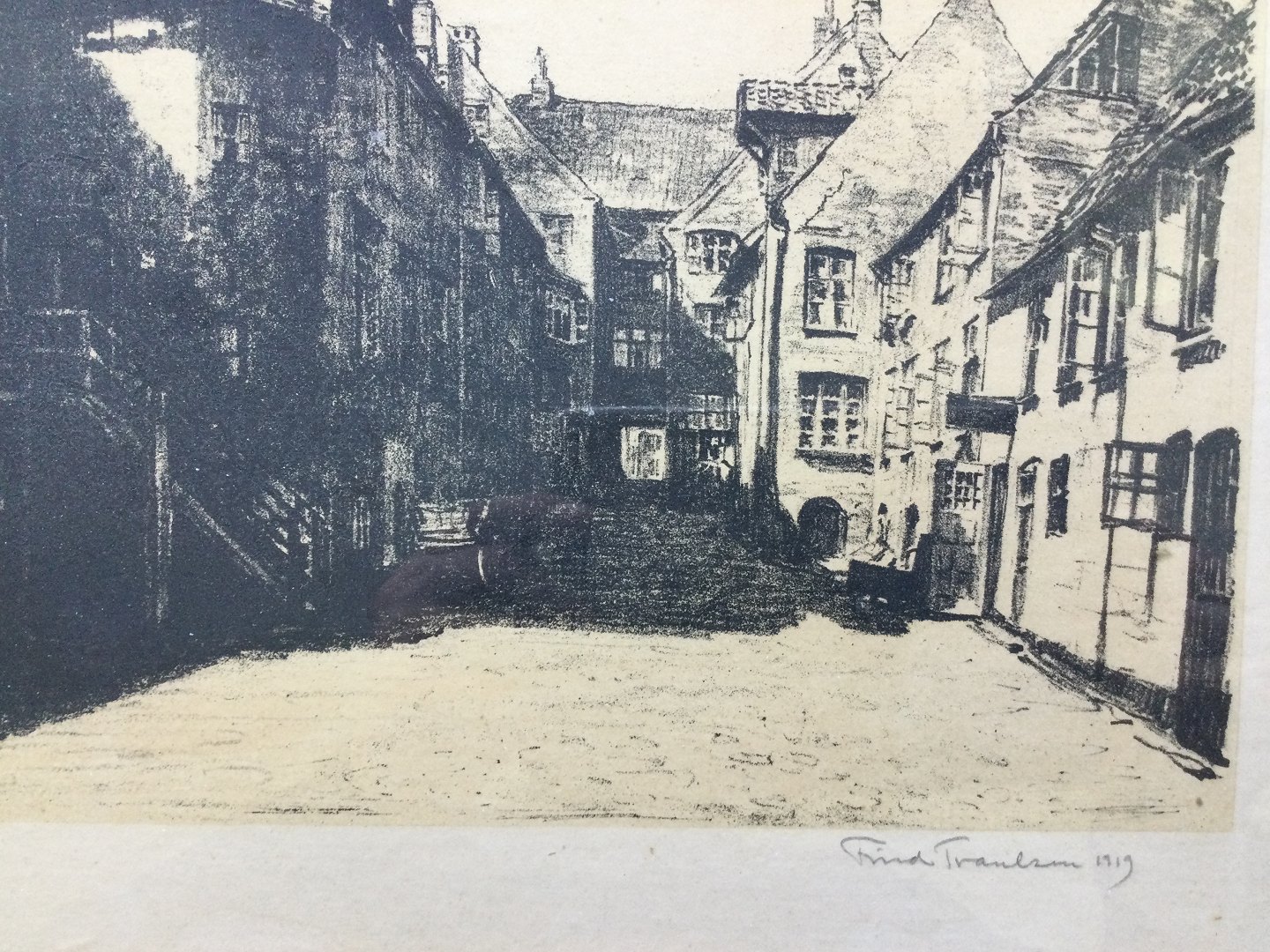 Radering af Friedrich Traulsen 1919 - Gadeparti antagelig fra Hamborg.