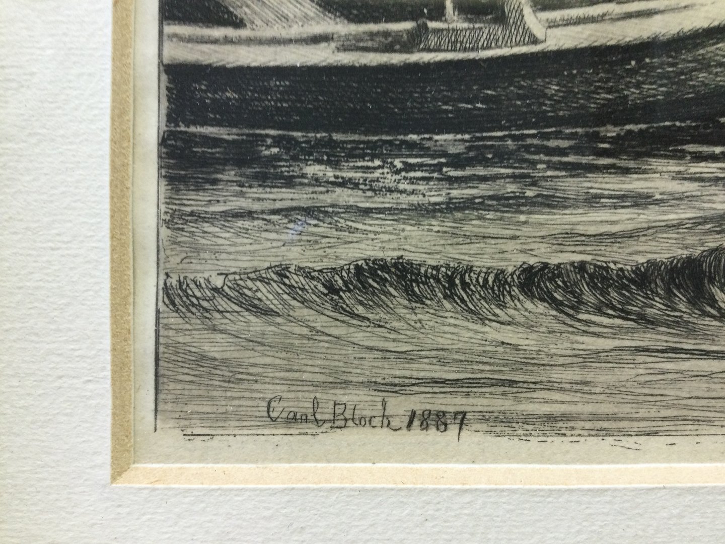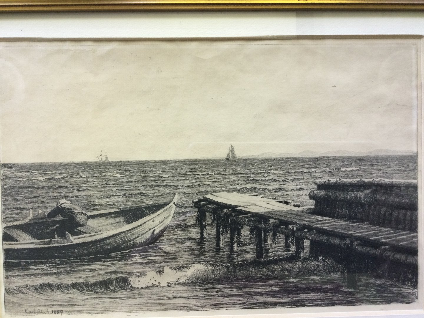 Radering 1887 af Carl Bloch - Båden ved broen.