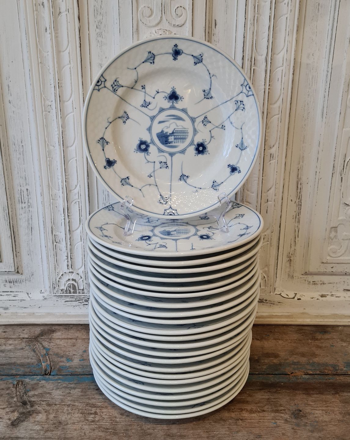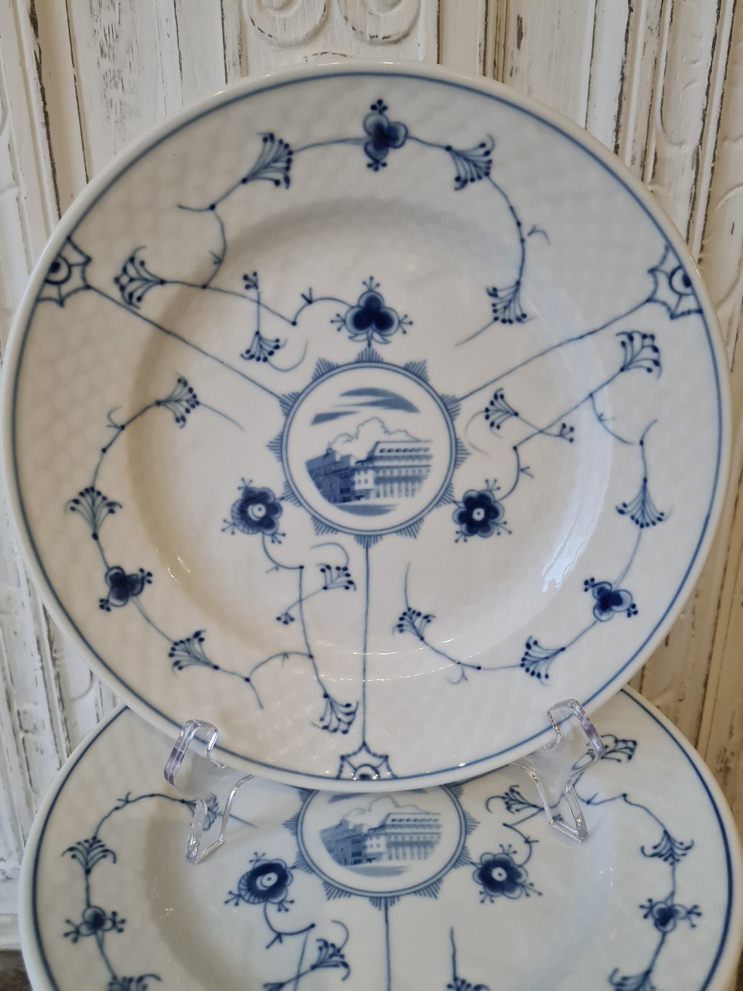 B&G Blåmalet Hotel porcelæn - middagstallerken med logo