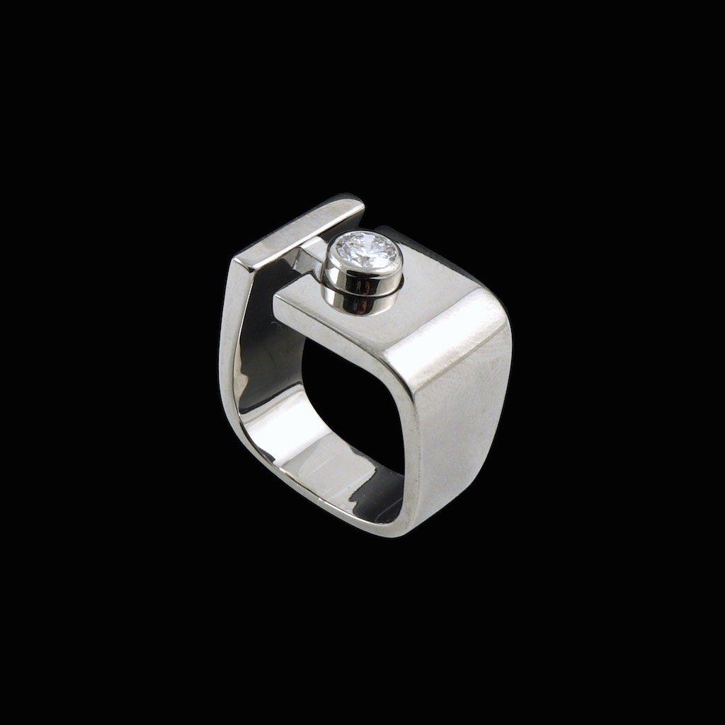 Georg Jensen. Solitairering i 18k hvidguld med diamant 0.50ct. 1945-51.