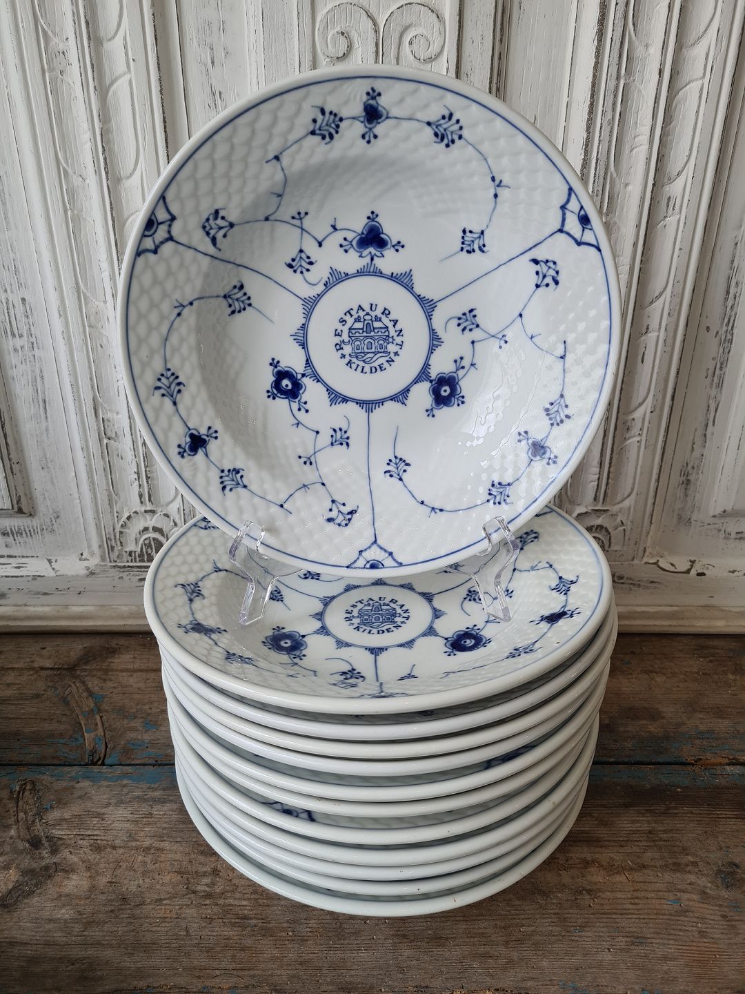 B&G Blåmalet Hotelporcelæn med logo "Kilden" stor dybtallerken